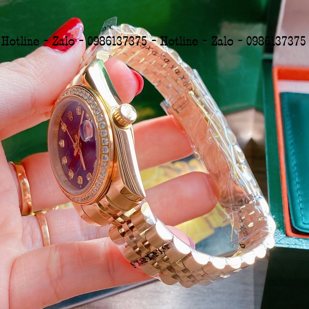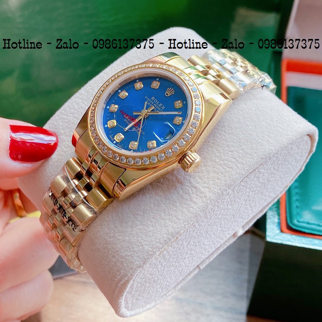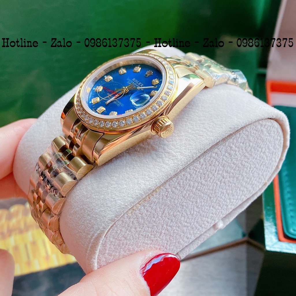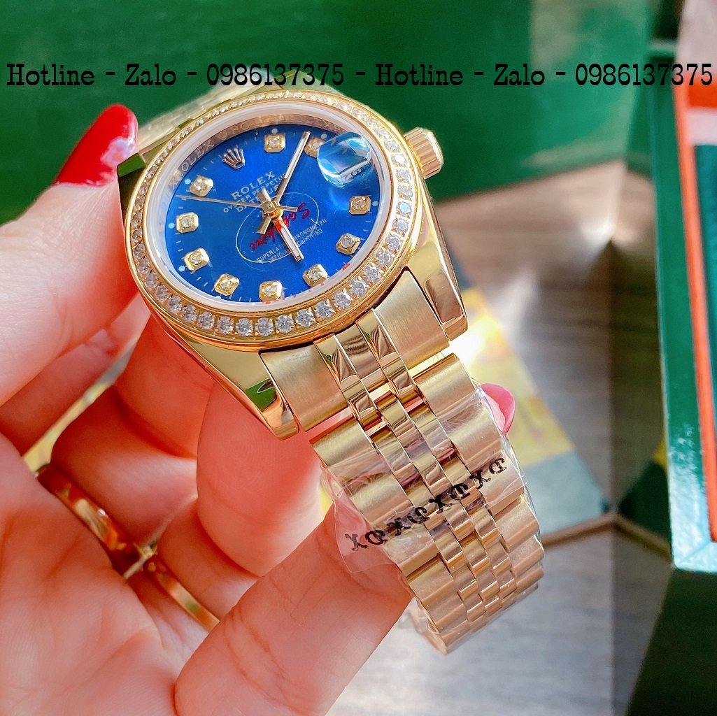 - Đồng Hồ Nữ Rolex Viền Đá Dây Vàng Mặt Blue 32mm