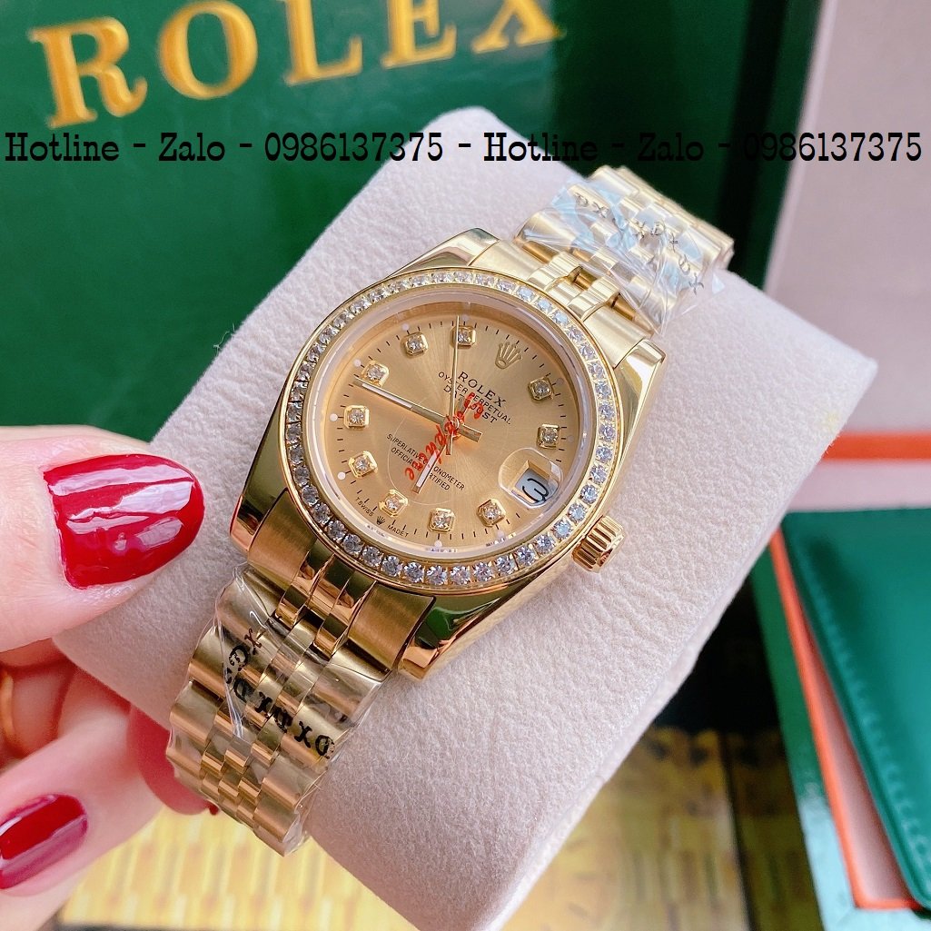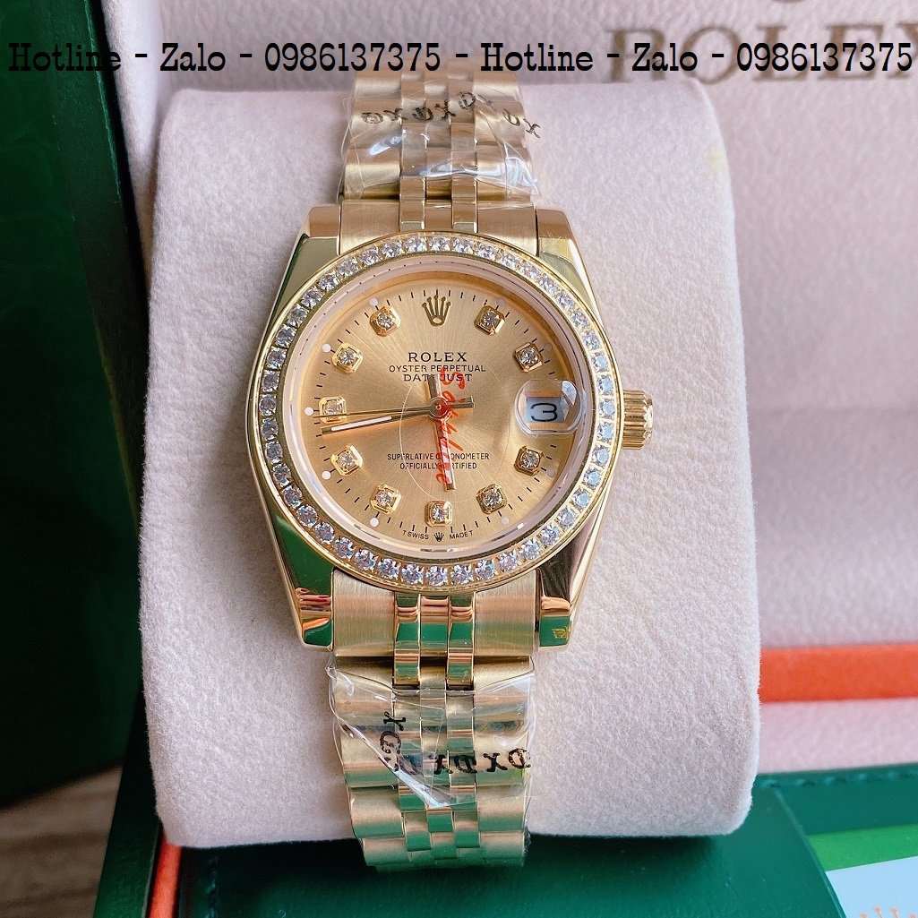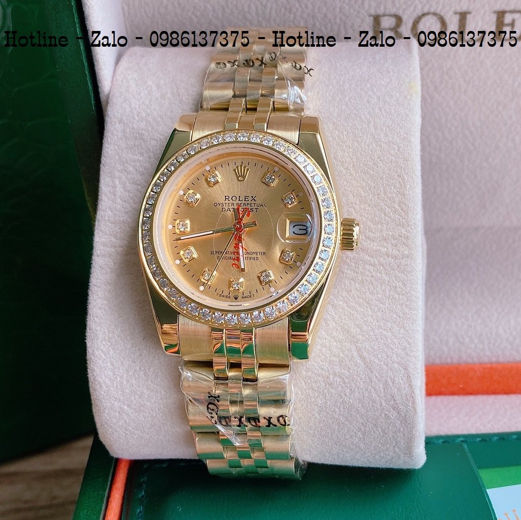 - Đồng Hồ Nữ Rolex Viền Đá Dây Vàng Mặt Vàng 32mm