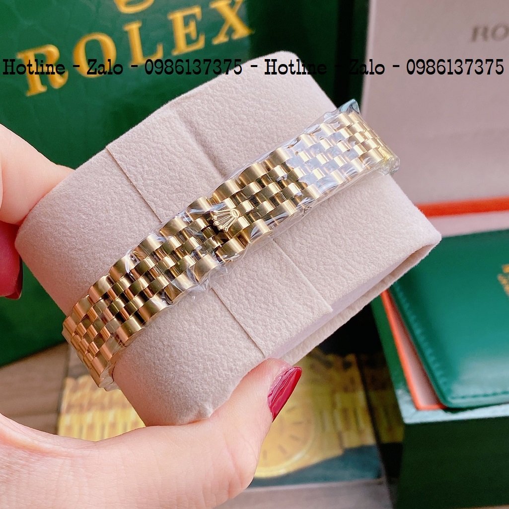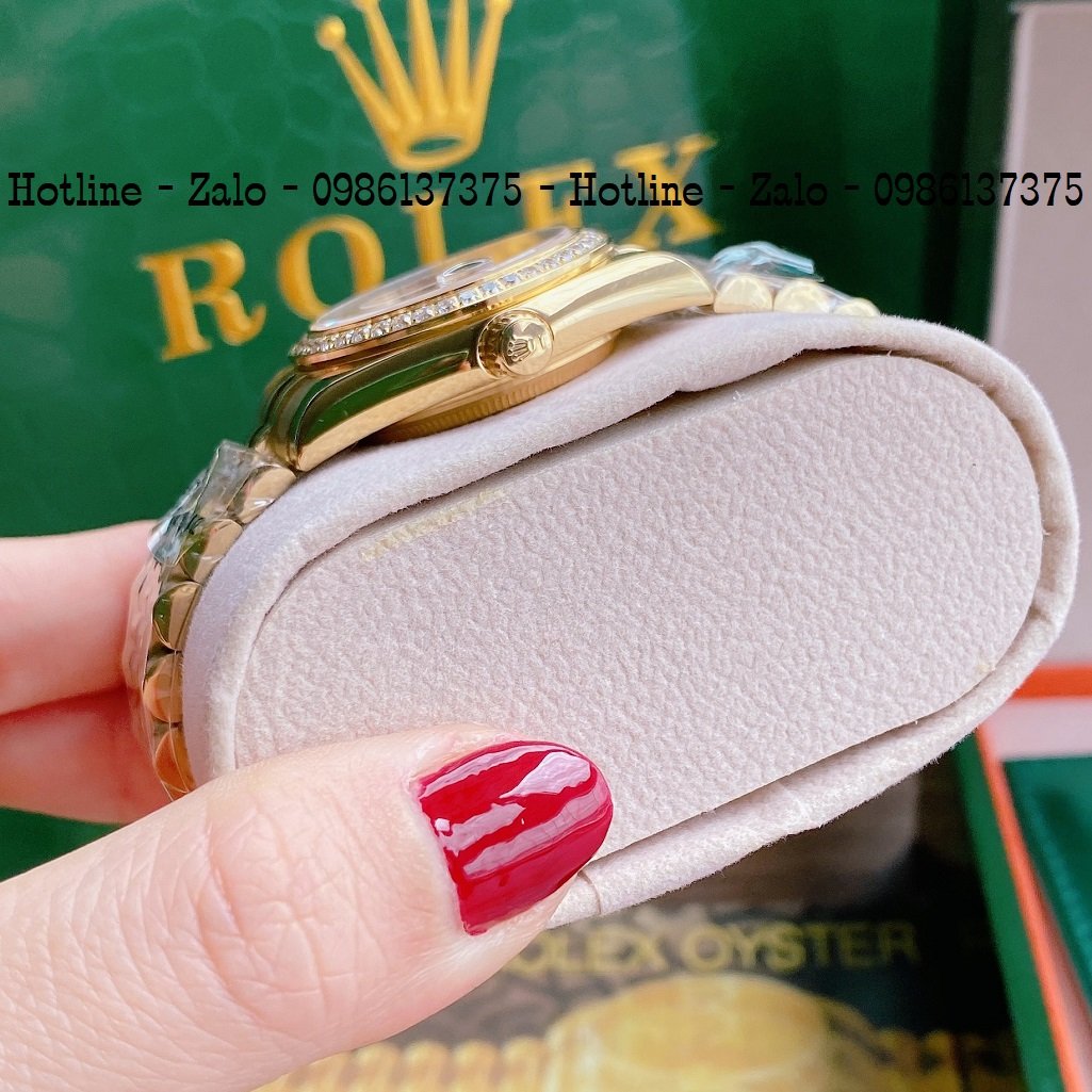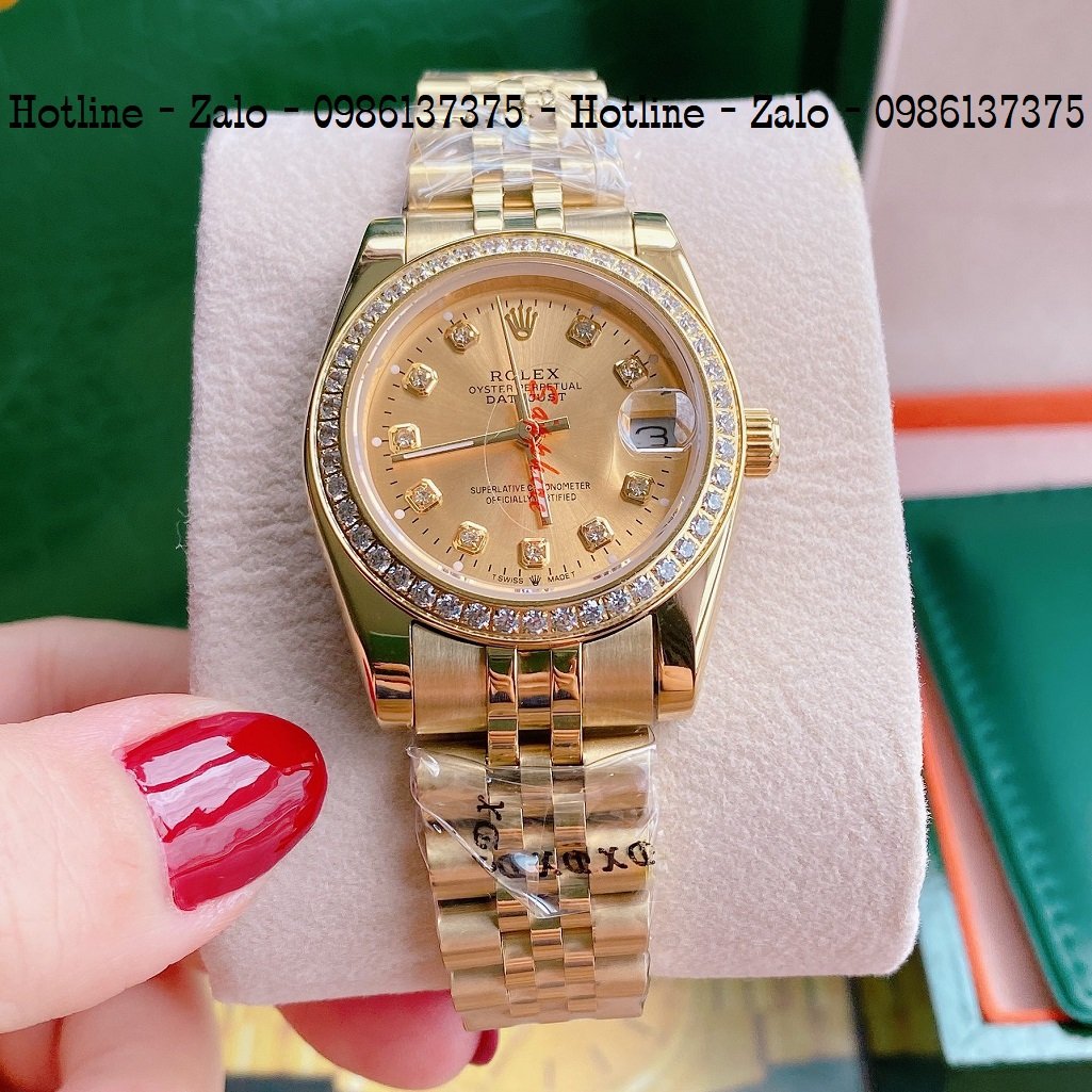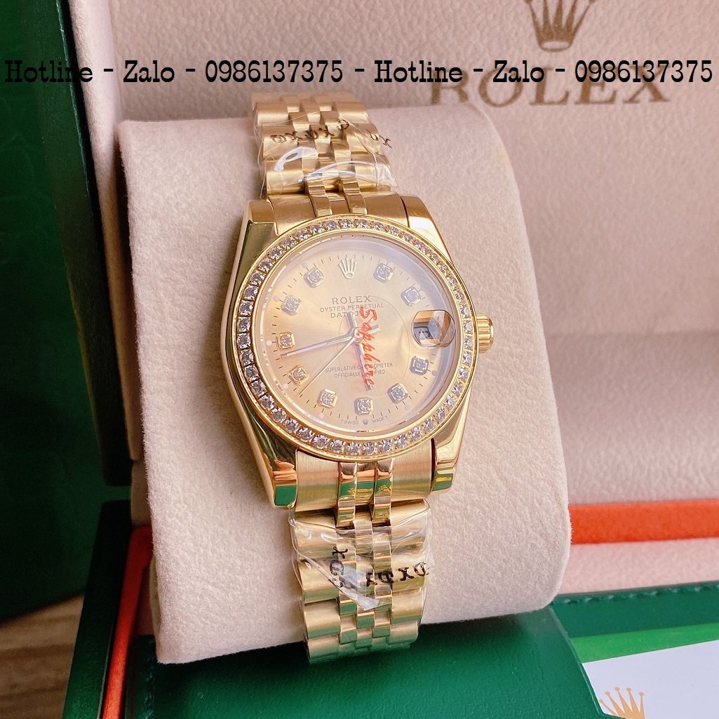- Đồng Hồ Nữ Rolex Viền Đá Dây Vàng Mặt Vàng 32mm