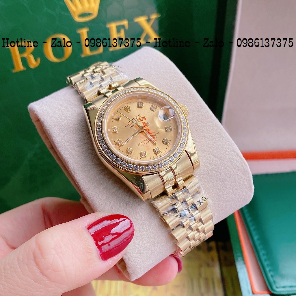 Đồng Hồ Nữ Rolex Viền Đá Dây Vàng Mặt Vàng 32mm