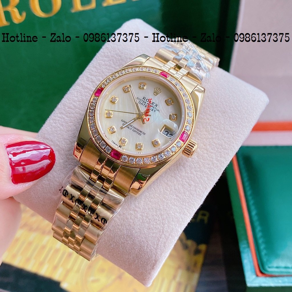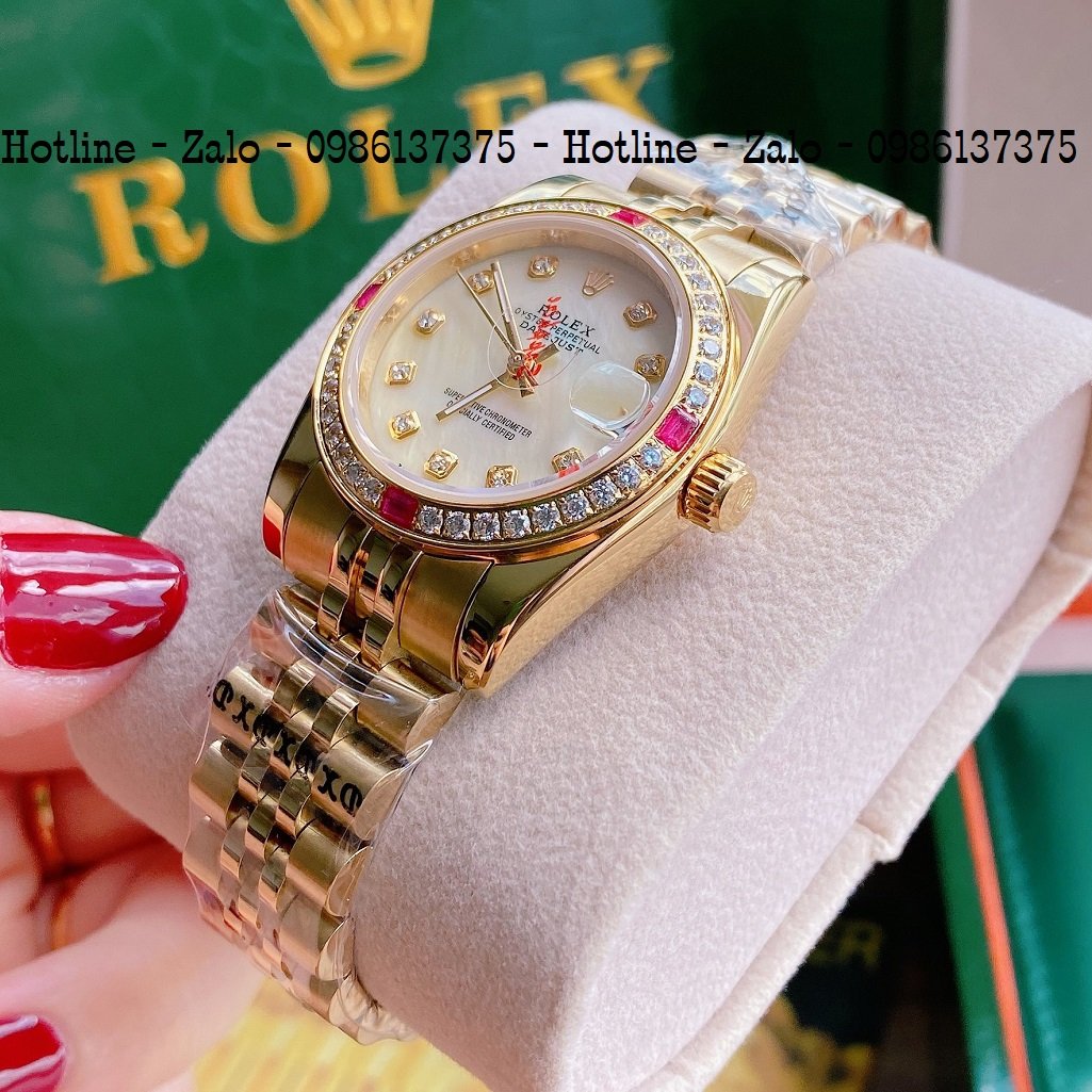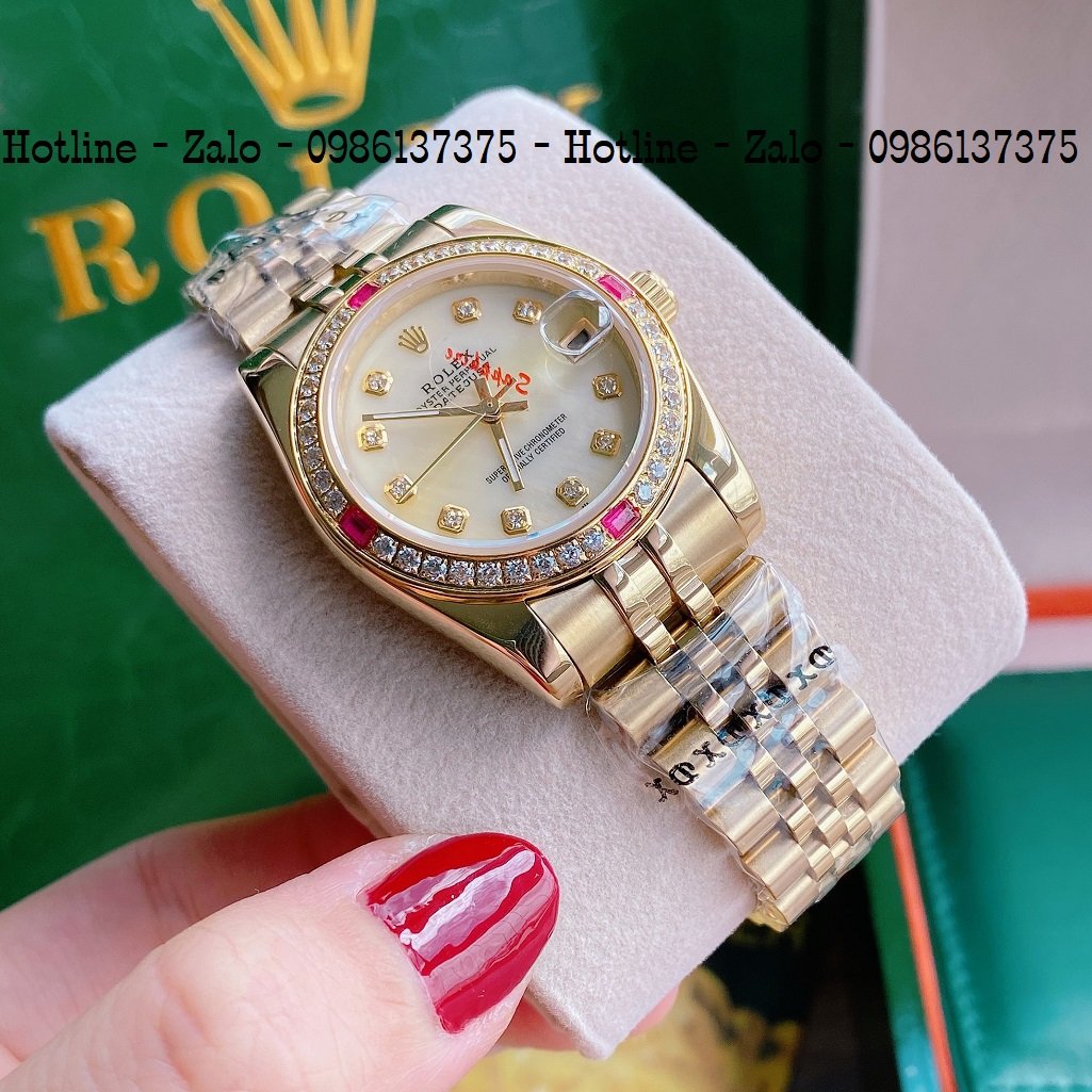 - Đồng Hồ Nữ Rolex Viền Đá Dây Vàng Mặt Vàng Ngọc 32mm