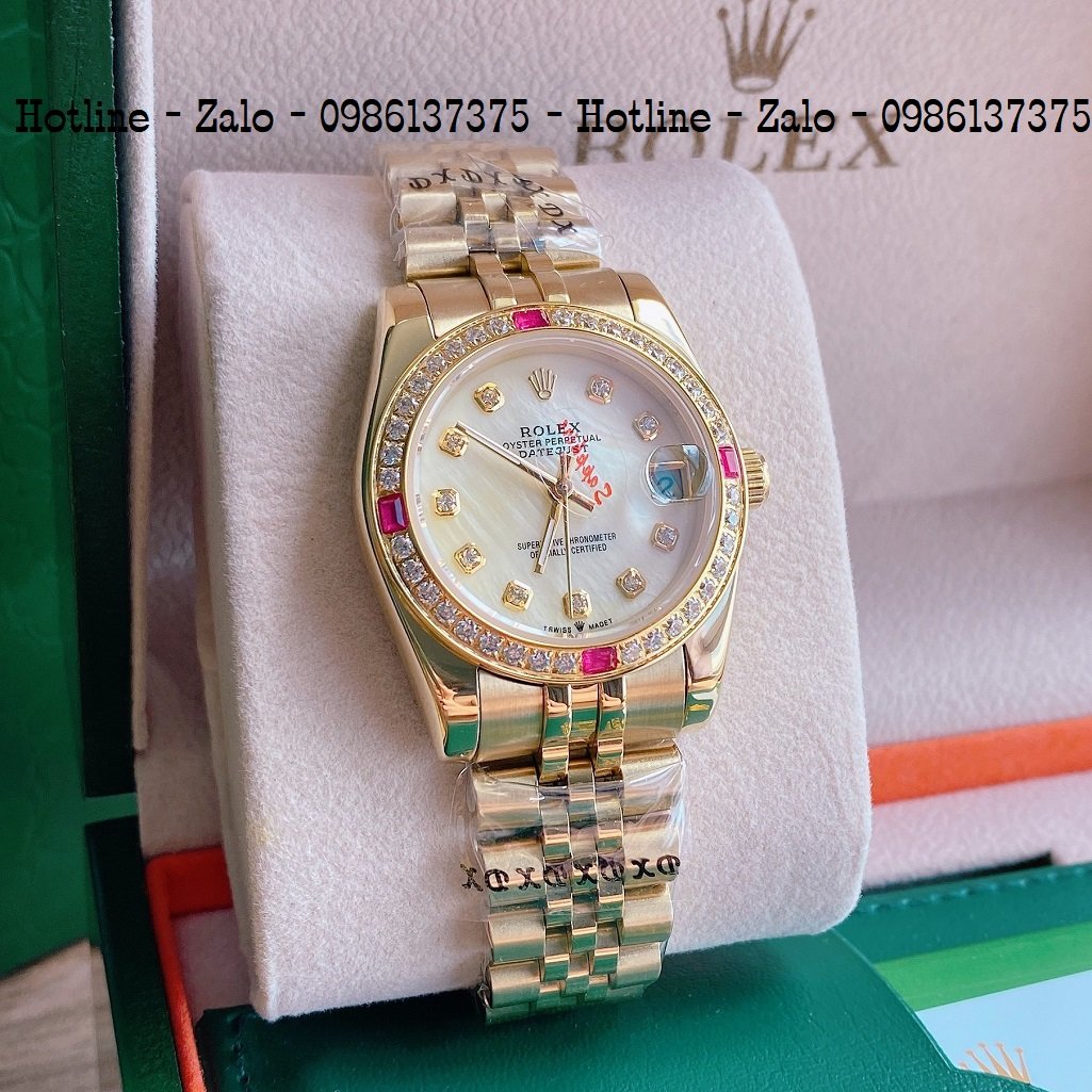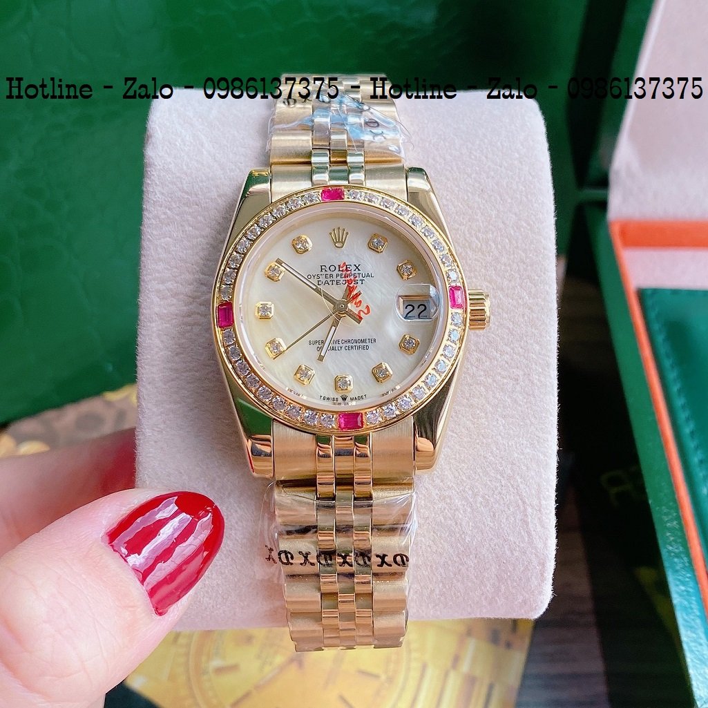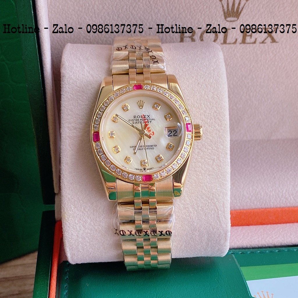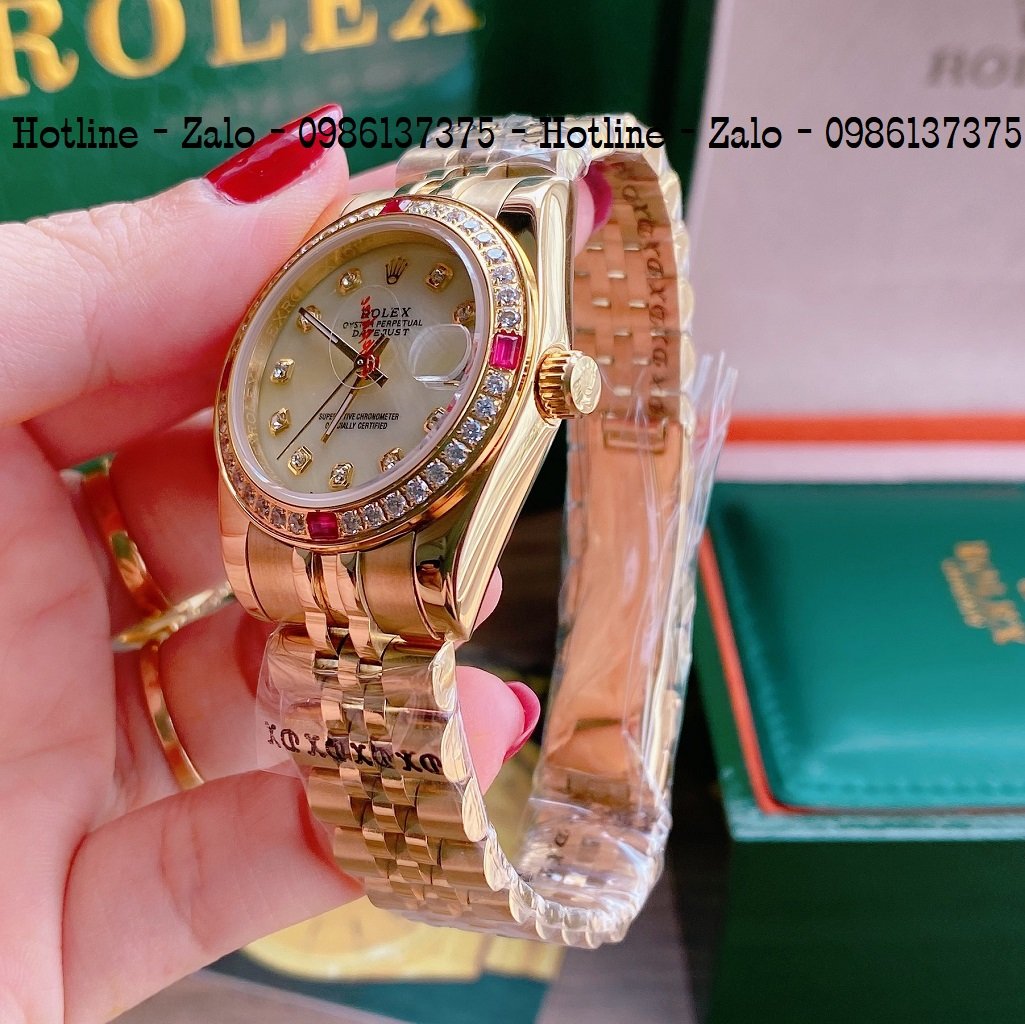 - Đồng Hồ Nữ Rolex Viền Đá Dây Vàng Mặt Vàng Ngọc 32mm