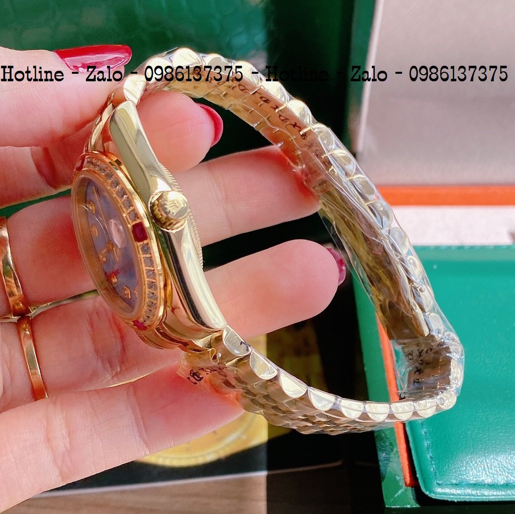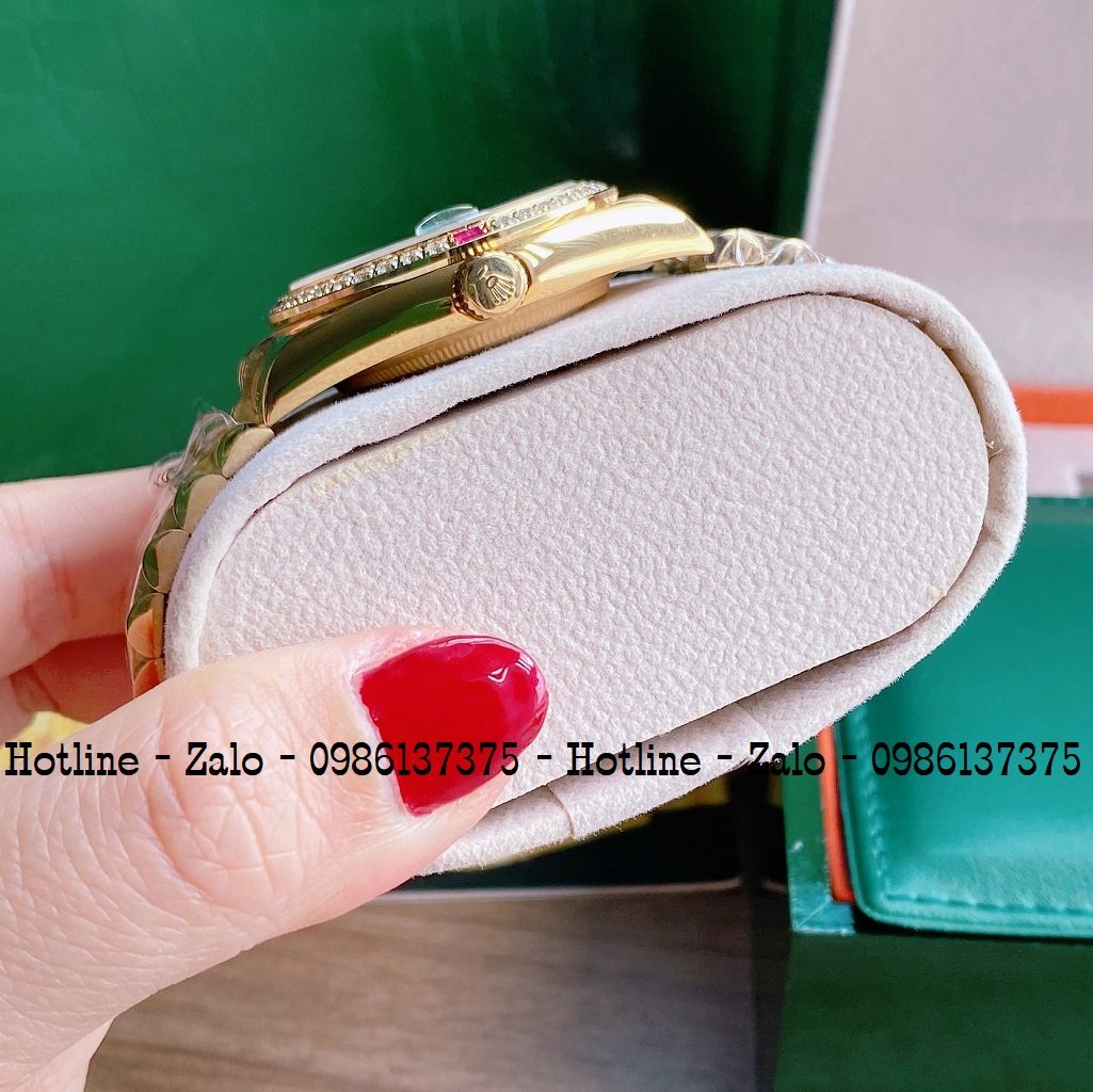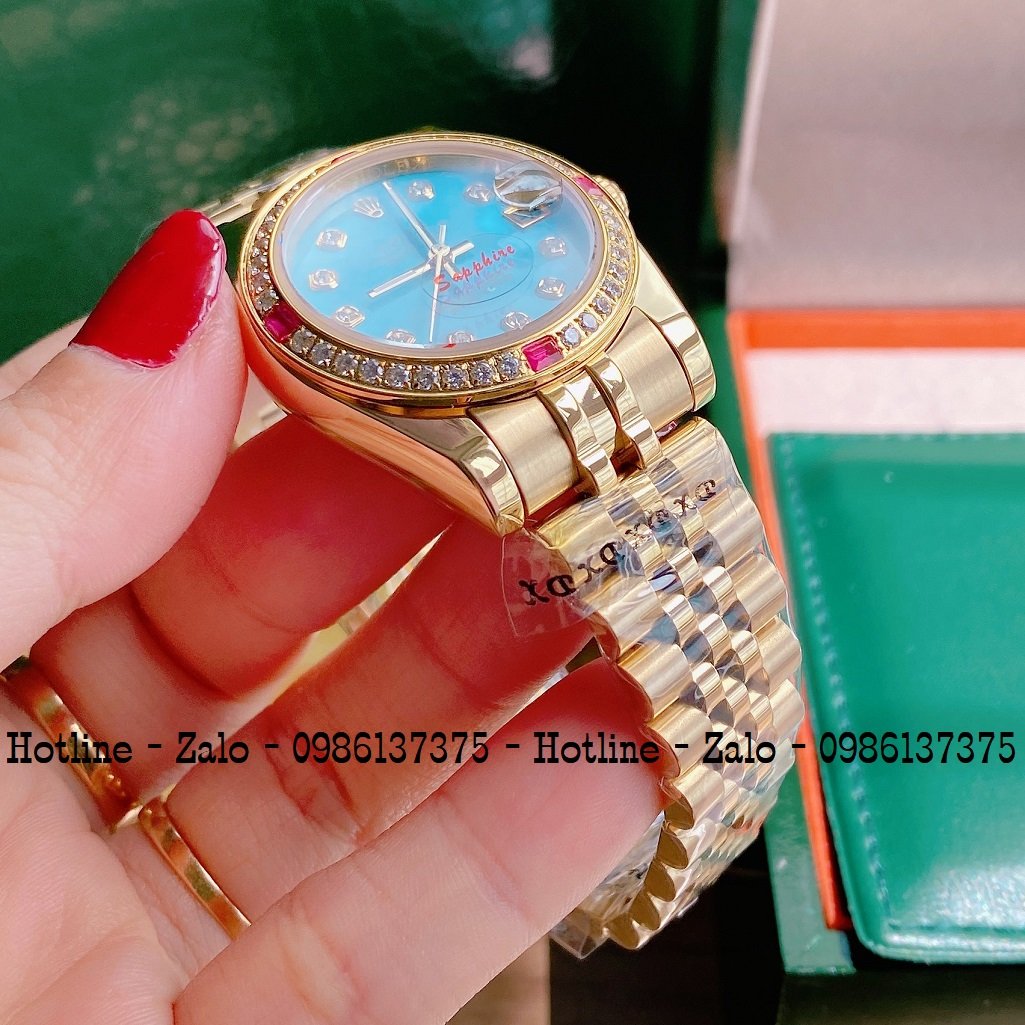 - Đồng Hồ Nữ Rolex Viền Đá Dây Vàng Mặt Xanh Ngọc 32mm