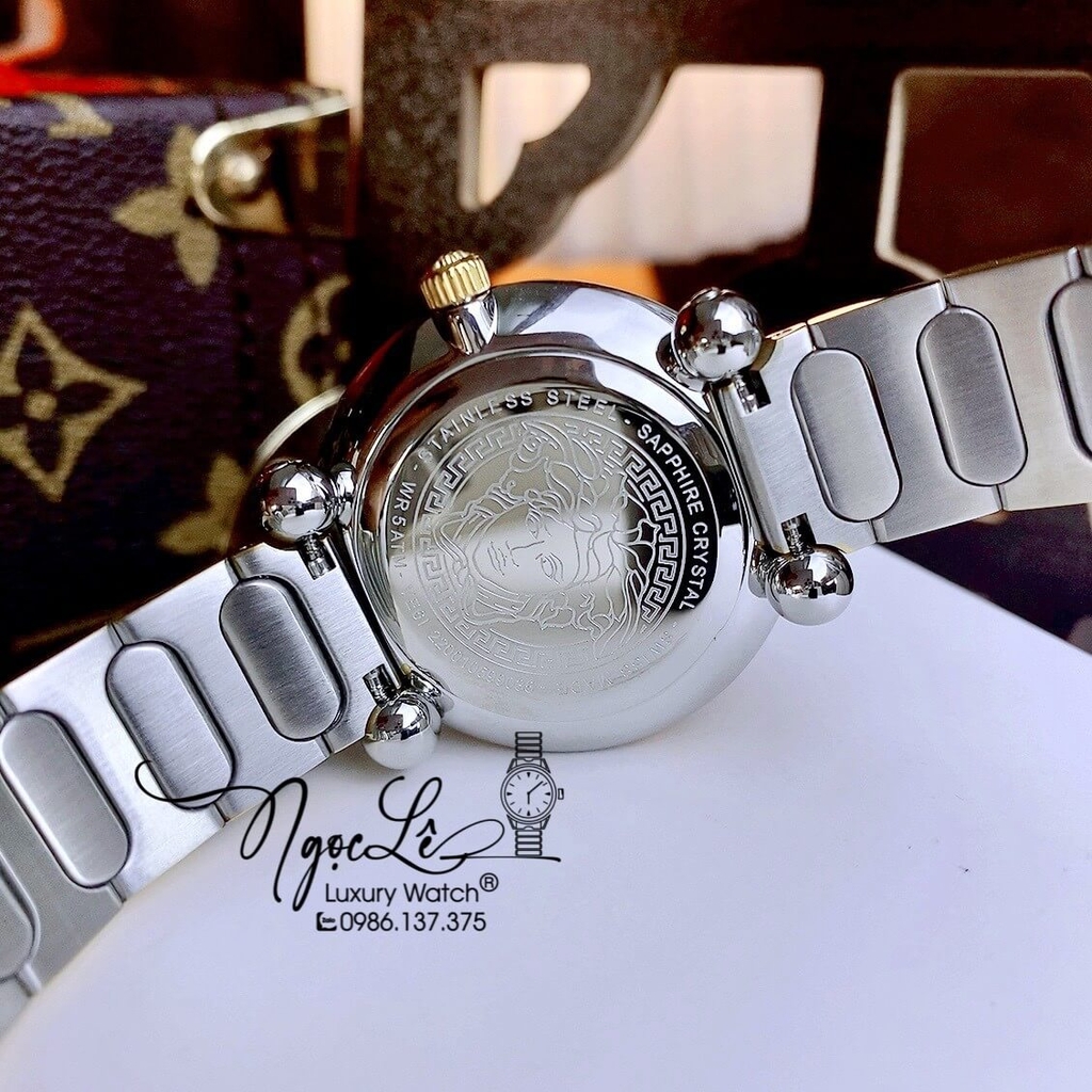 - Thiết kế độc đáo đặc trưng của hãng Versace với icon Medusa lồi nằm ở trung tâm mặt