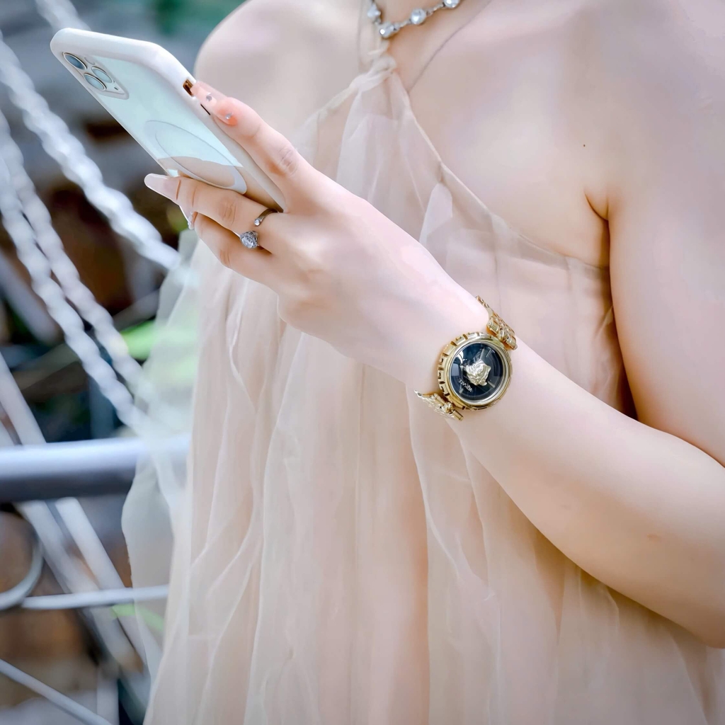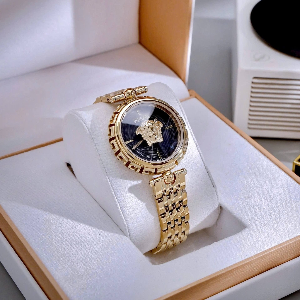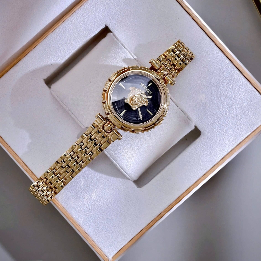 Đồng Hồ Nữ Versace Medusa Heritage Dây Kim Loại Vàng Mặt Medusa Đen Size 38mm – Quartz Japan