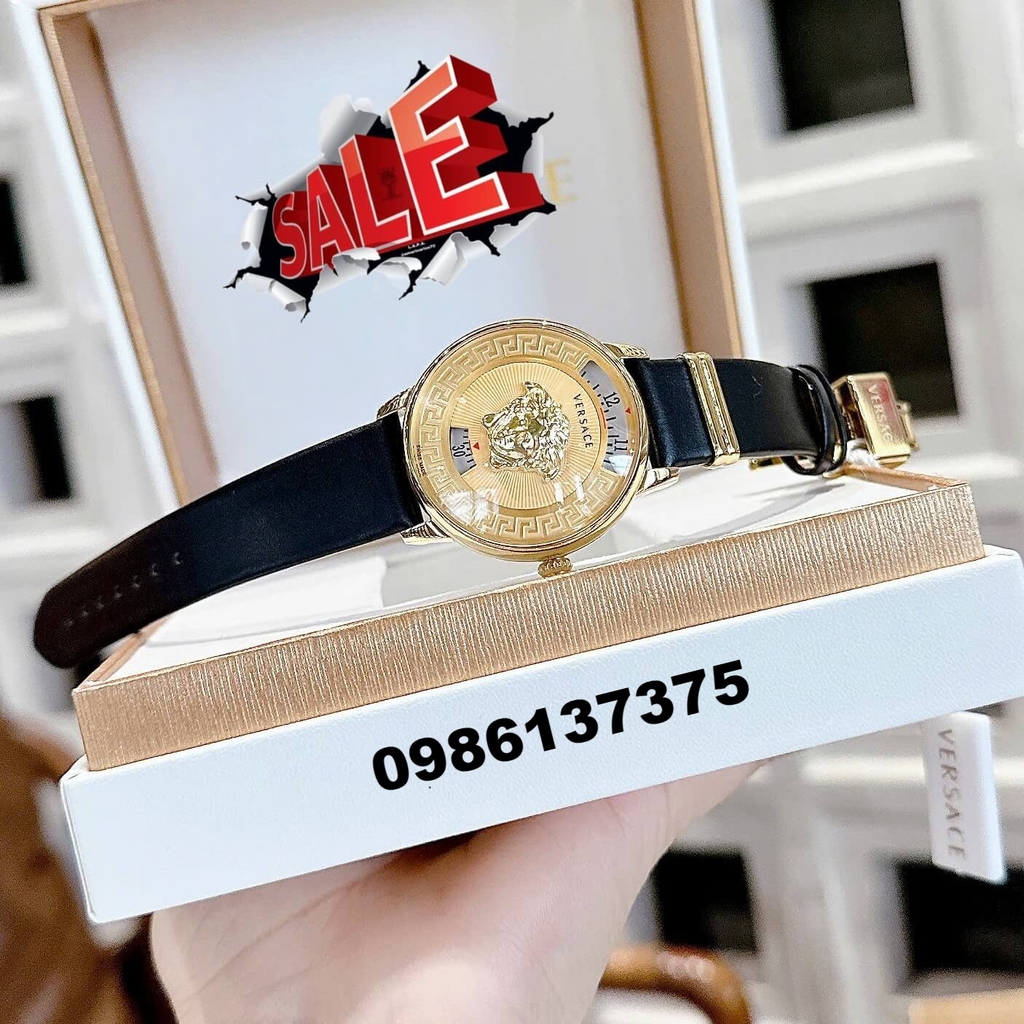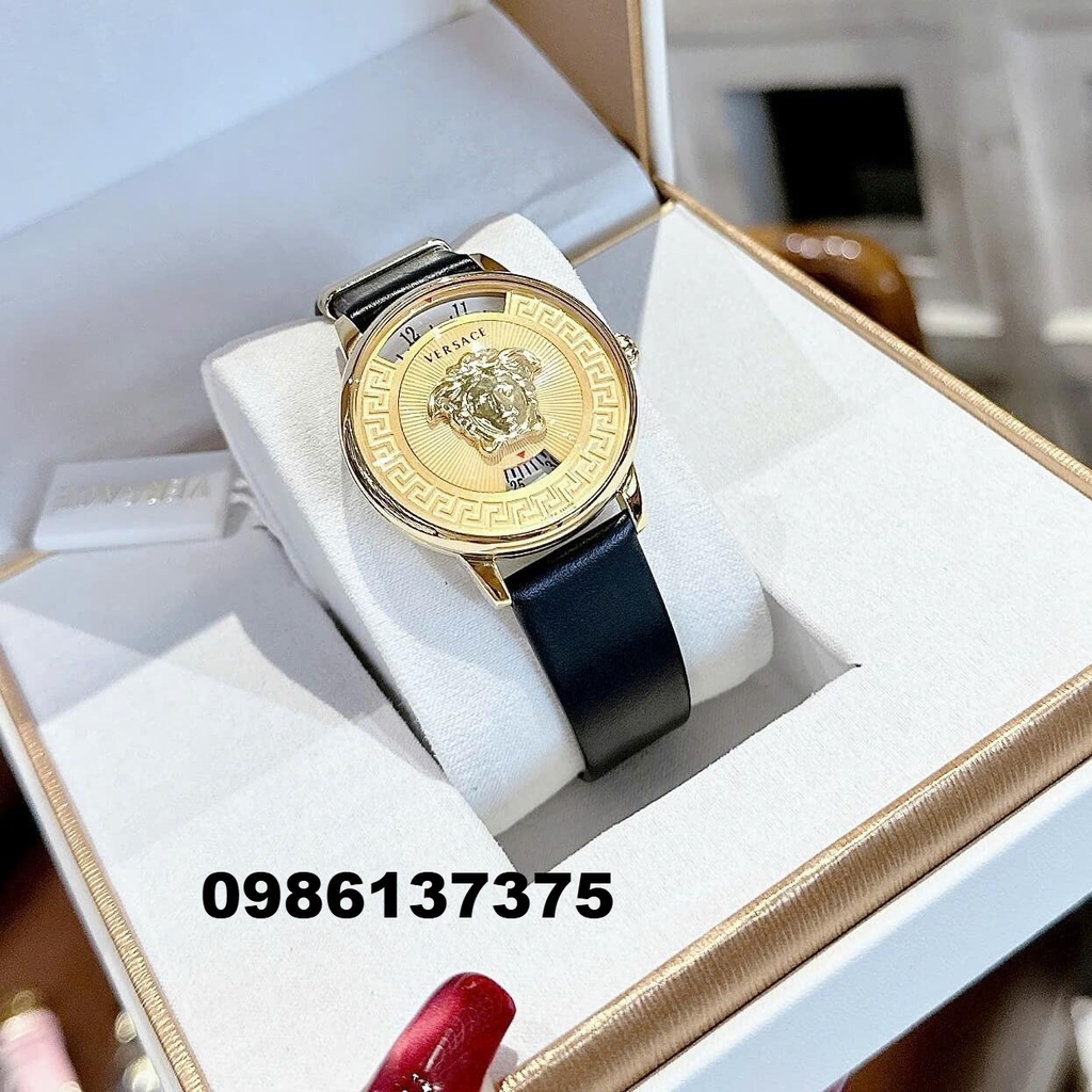 Đồng Hồ Nữ Versace Medusa Icon Dây Da Đen Mặt Vàng Size 38mm – Máy Pin Japan | New Season 2026