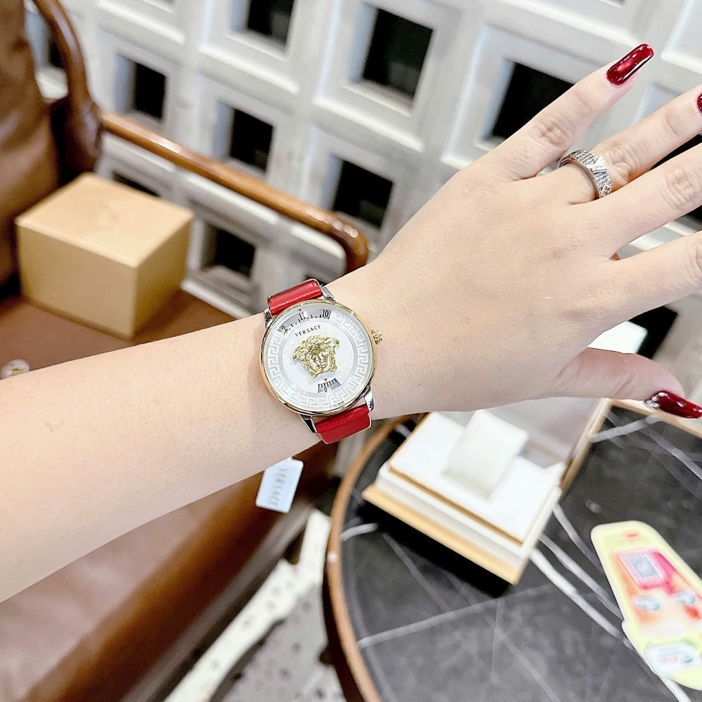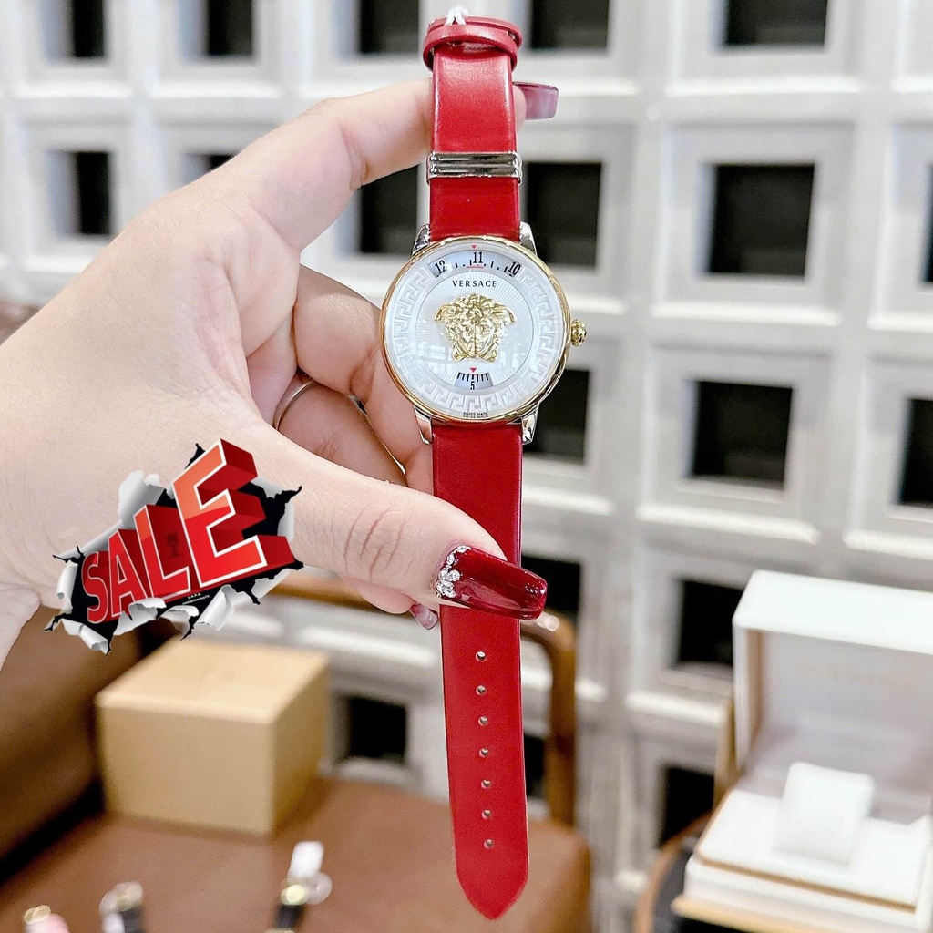 Hình ảnh Đồng Hồ Nữ Versace Medusa Icon Dây Da Đỏ Mặt Trắng Size 38mm – Máy Pin Japan | New Season 2026