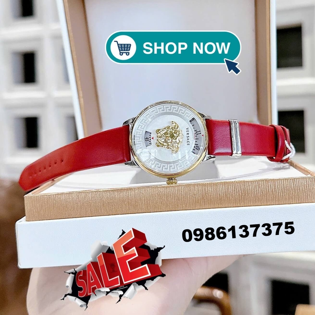Phiên bản Versace Medusa Icon dây da đỏ mặt trắng mang vẻ đẹp nổi bật – sang trọng – thời thượng, thuộc bộ sưu tập New Season 2026. Sự kết hợp giữa dây da đỏ cá tính, mặt trắng thanh lịch và biểu tượng Medusa trung tâm tạo nên dấu ấn nhận diện mạnh mẽ, chuẩn tinh thần luxury của Versace.