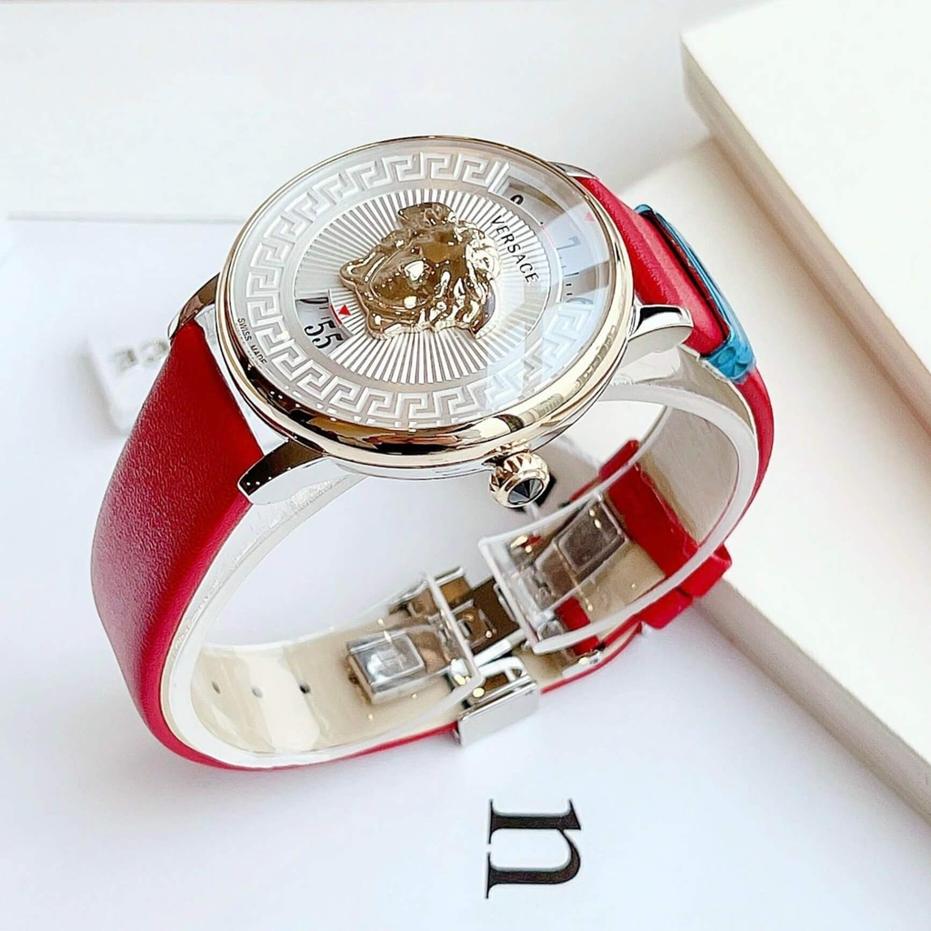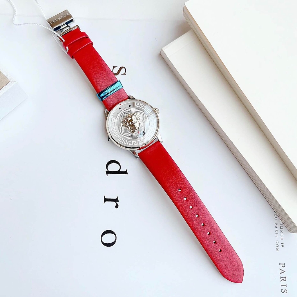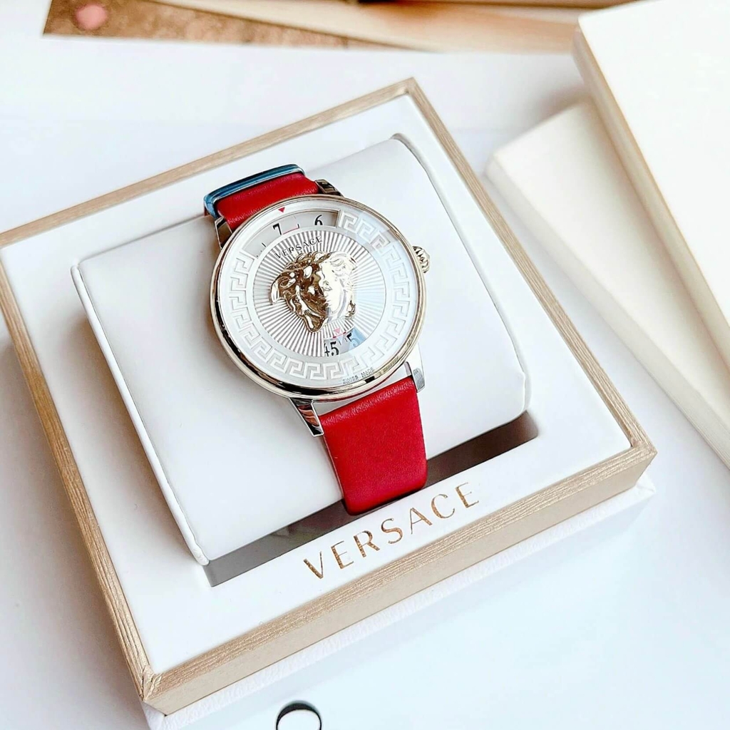 Đồng Hồ Nữ Versace Medusa Icon Dây Da Đỏ Mặt Trắng Size 38mm – Quartz