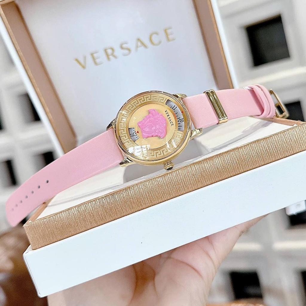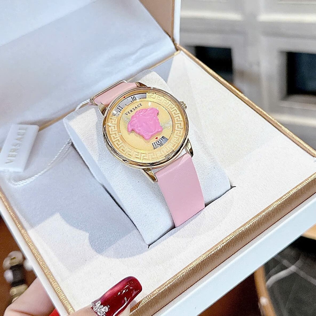Đồng Hồ Nữ Versace Medusa Icon Dây Da Hồng Size 38mm – Máy Pin Japan | New Season 2026