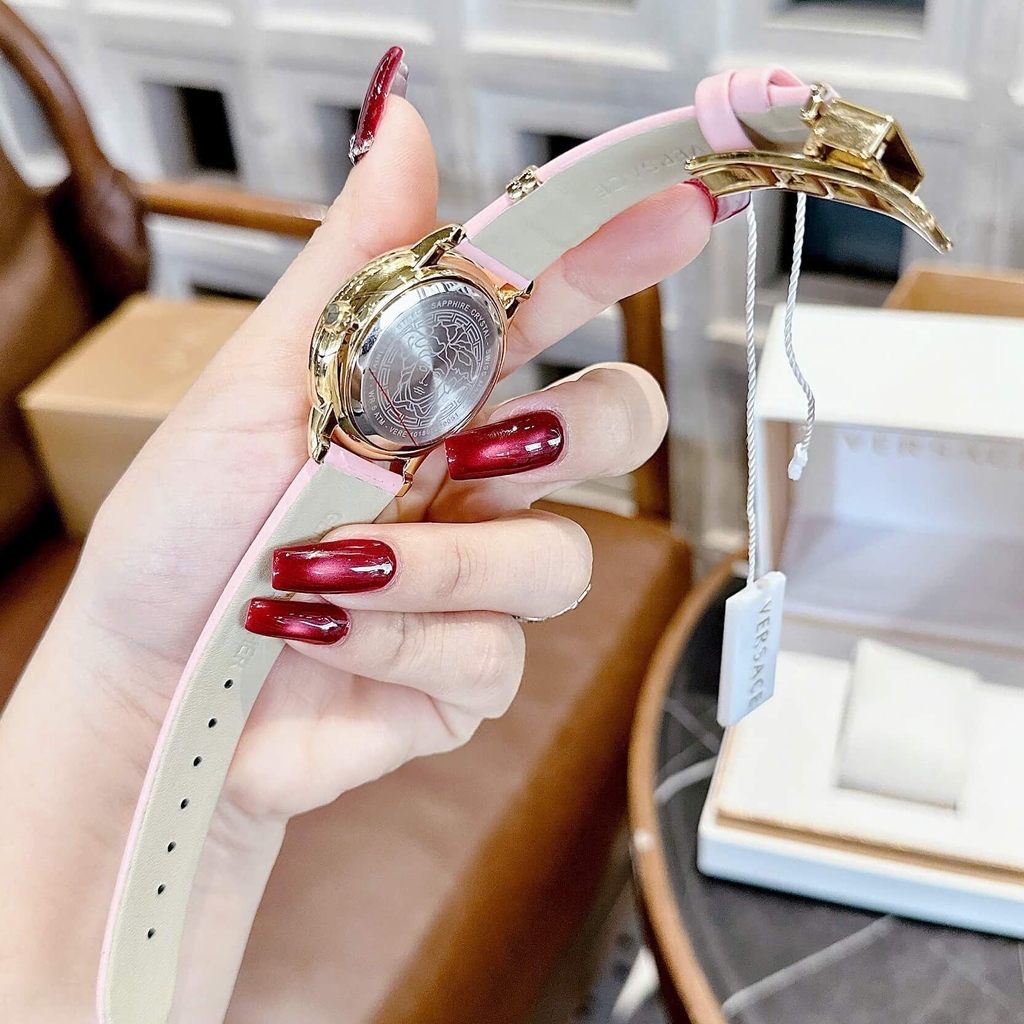 Hình ảnh Đồng Hồ Nữ Versace Medusa Icon Dây Da Hồng Size 38mm – Máy Pin Japan