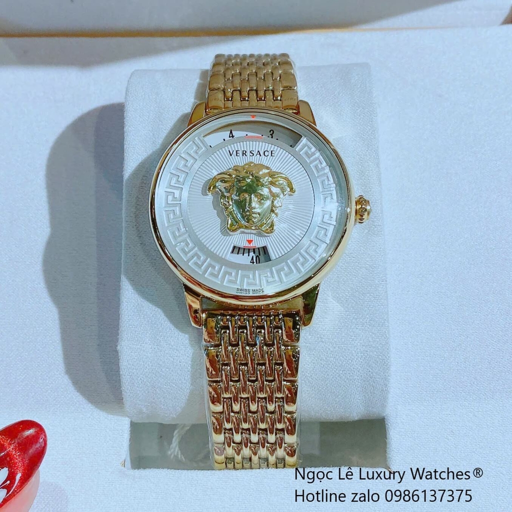Thiết kế gây ấn tượng với logo Medusa đặt tại trung tâm mặt số, biểu tượng đặc trưng của nhà mốt Versace, mang lại vẻ đẹp quyền lực và cuốn hút.
