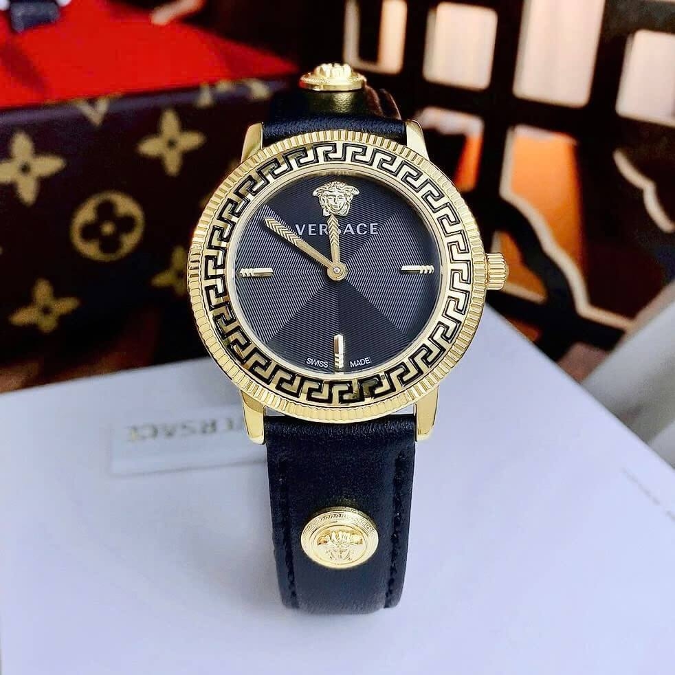 Đồng Hồ Nữ Versace Tribute Dây Da Đen Mặt Đen Vỏ Vàng Gold Size 35mm – Quartz Japan