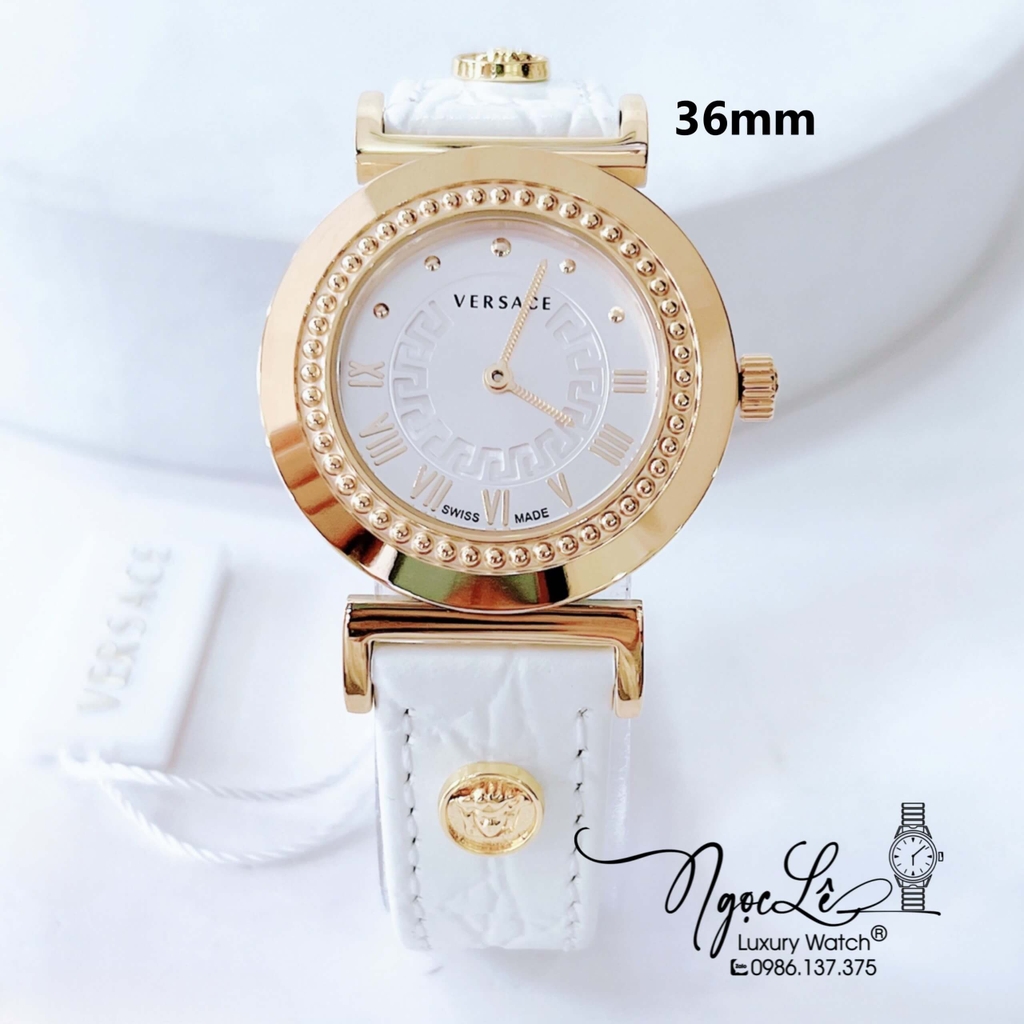 Đồng Hồ Nữ Versace Vanity Máy Thụy Sỹ Dây Da Trắng Size 35mm