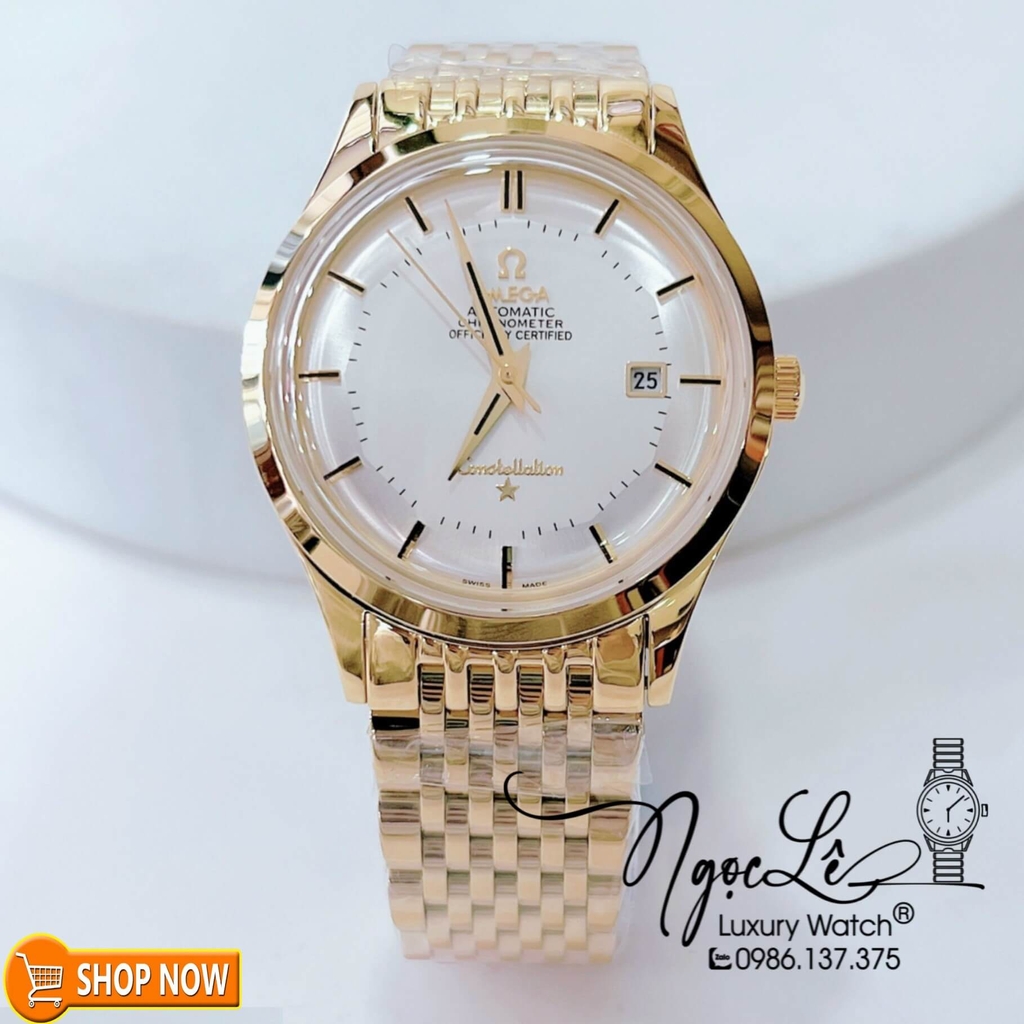 Đồng Hồ Omega Nam Máy Cơ Tự Động Dây Kim Loại Màu Vàng Mặt Trắng Size 40mm