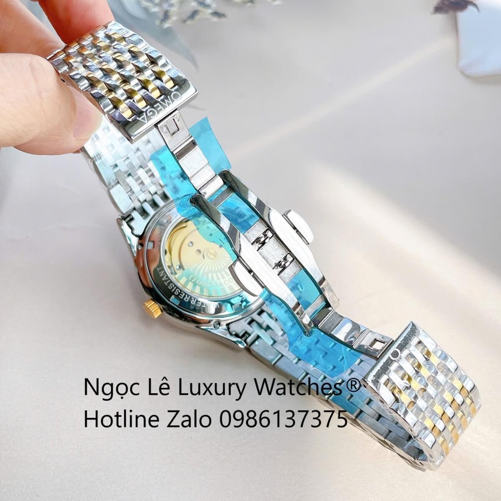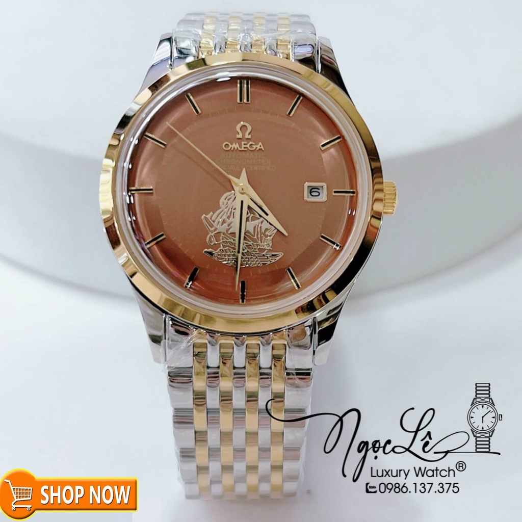 Đồng hồ Omega thuyền buồm mặt nâu, dây demi vàng, đồng hồ Omega tự động nam cao cấp
