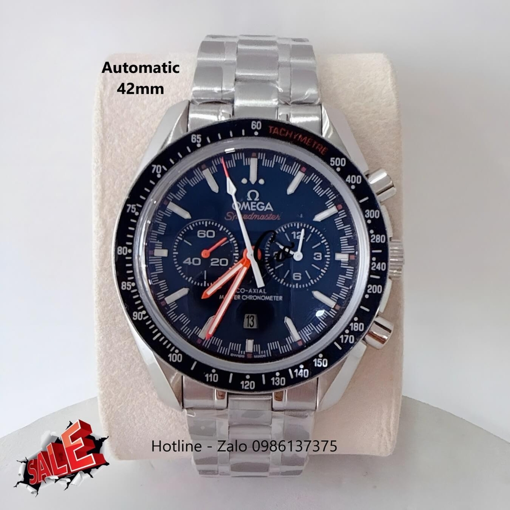 Đồng Hồ Omega Speedmaster Automatic Dây Kim Loại Silver Mặt Xanh Đậm Viền Đen Size 42mm