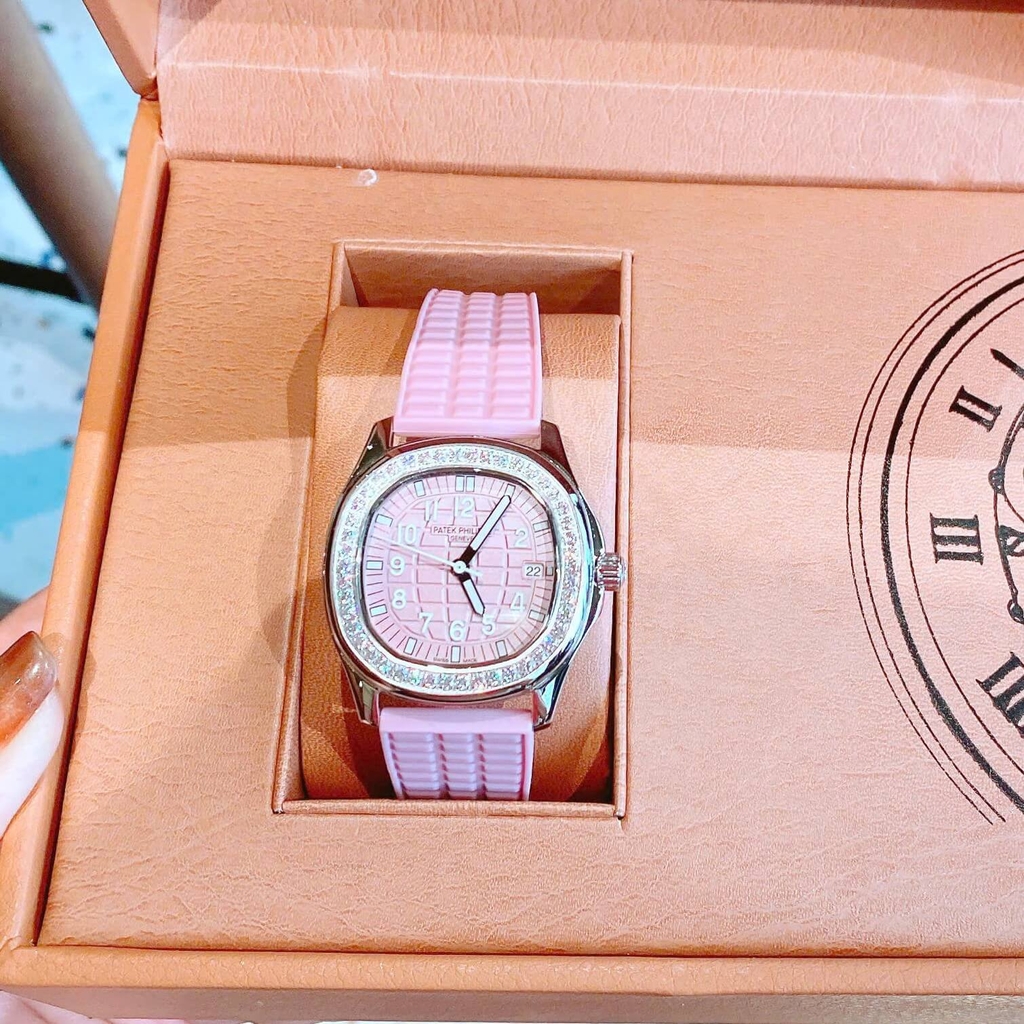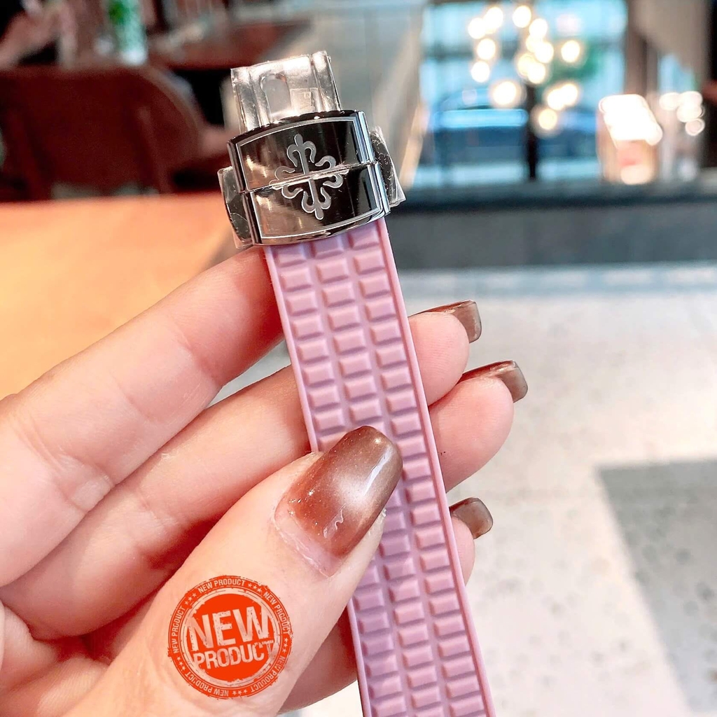 Hình ảnh Đồng Hồ Patek Philippe Aquanaut Nữ Dây Cao Su Màu Hồng Tím Đính Đá Máy Pin Size 35mm