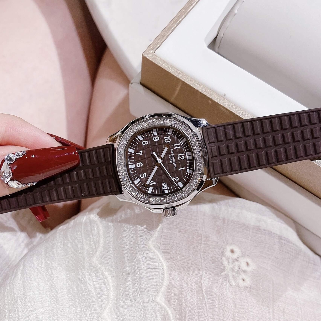 Hình ảnh Đồng Hồ Patek Philippe Aquanaut Nữ Dây Cao Su Màu Nâu Đính Đá Máy Pin Size 35mm