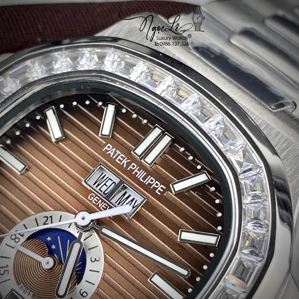 Hình ảnh thực tế Đồng Hồ Patek Philippe Nam Máy Cơ Tự Động Dây Inox Silver Mặt Nâu 42mm