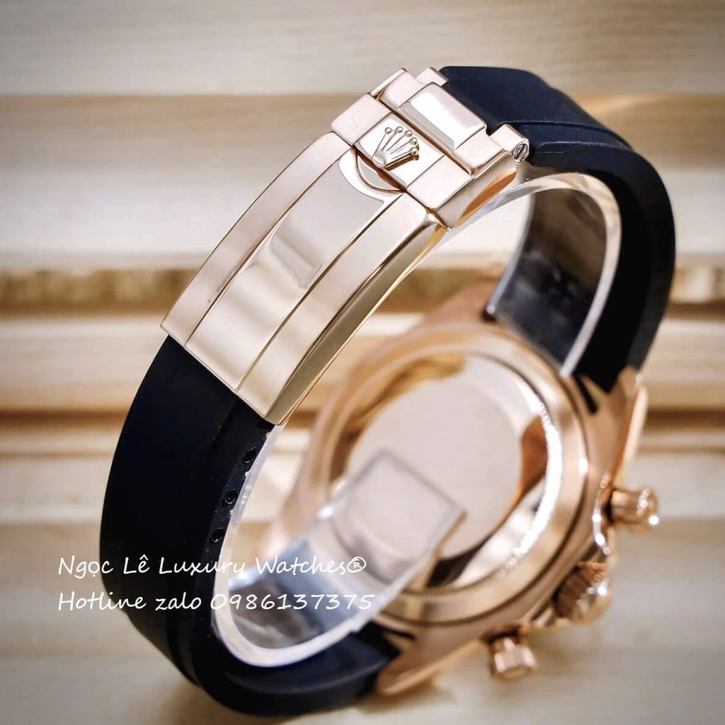 Đồng Hồ Rolex Cosmograph Daytona Automatic Dây Cao Su Đen Mặt Đen Rose Size 40mm