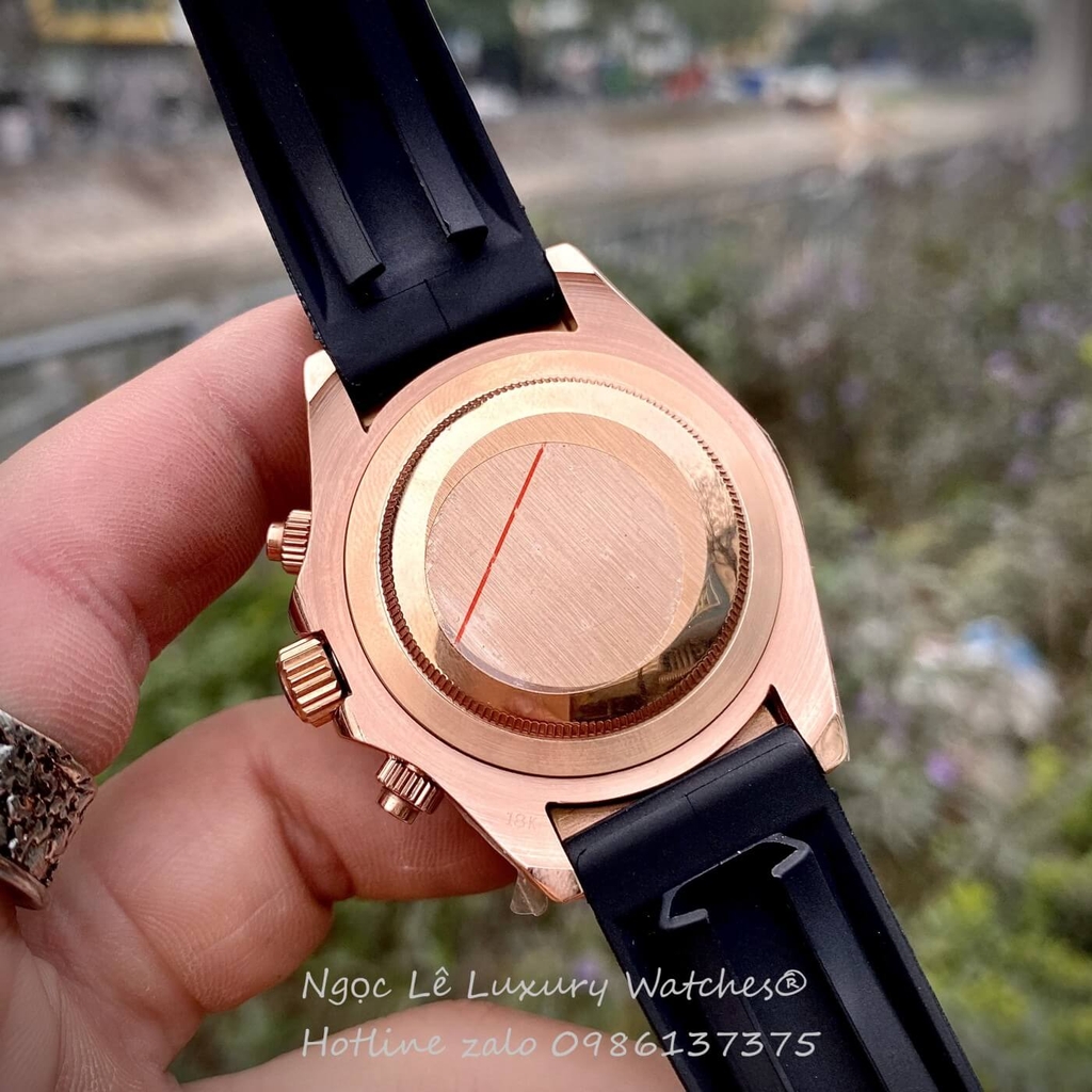 Hình ảnh Đồng Hồ Rolex Cosmograph Daytona Automatic Dây Cao Su Đen Mặt Vàng Hồng Size 40mm - Đồng hồ Rolex Daytona nam máy cơ tự động dáng thể thao cao cấp