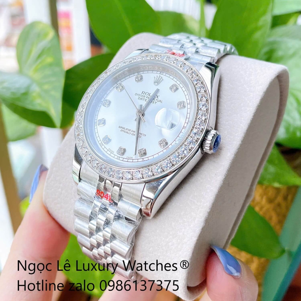 Đồng Hồ Rolex Datejust Cơ Tự Động Dây Thép Silver Mặt Trắng Size 41mm - Viền Đính Đá
