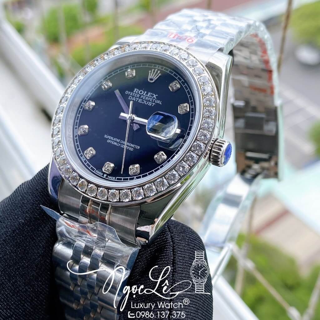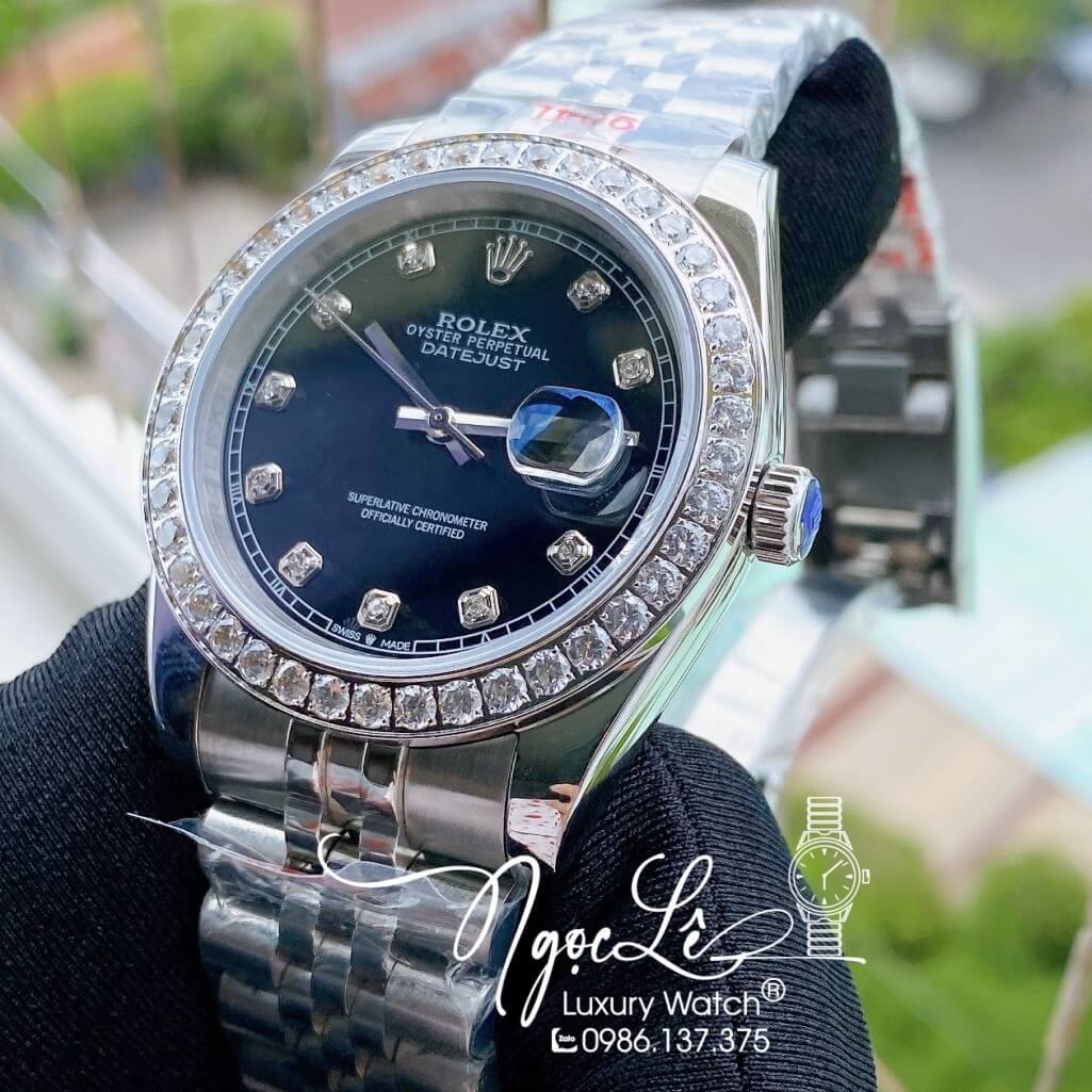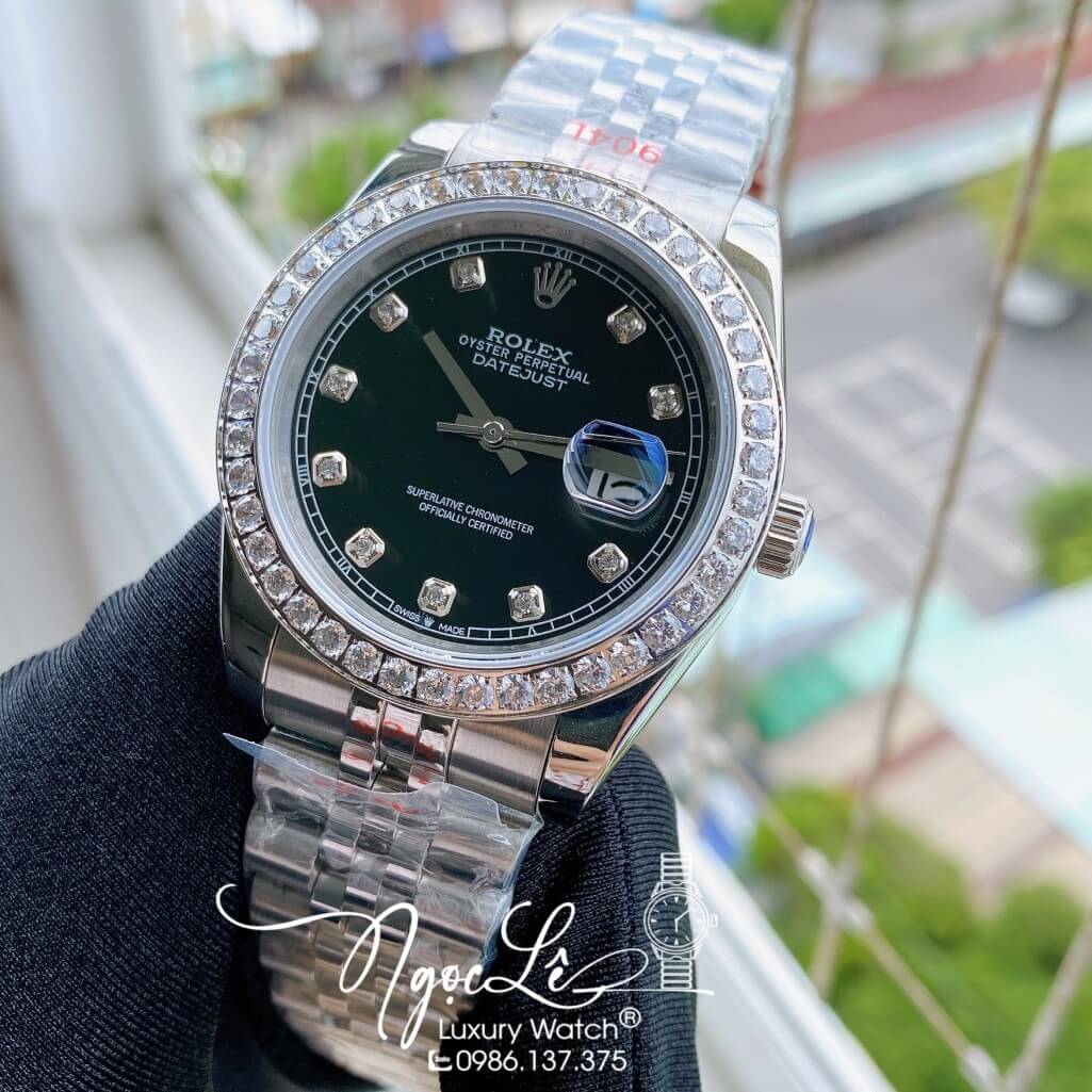 - Đồng hồ Rolex Datejust tự động cho nam mặt viền đính đá cao cấp, sang trọng