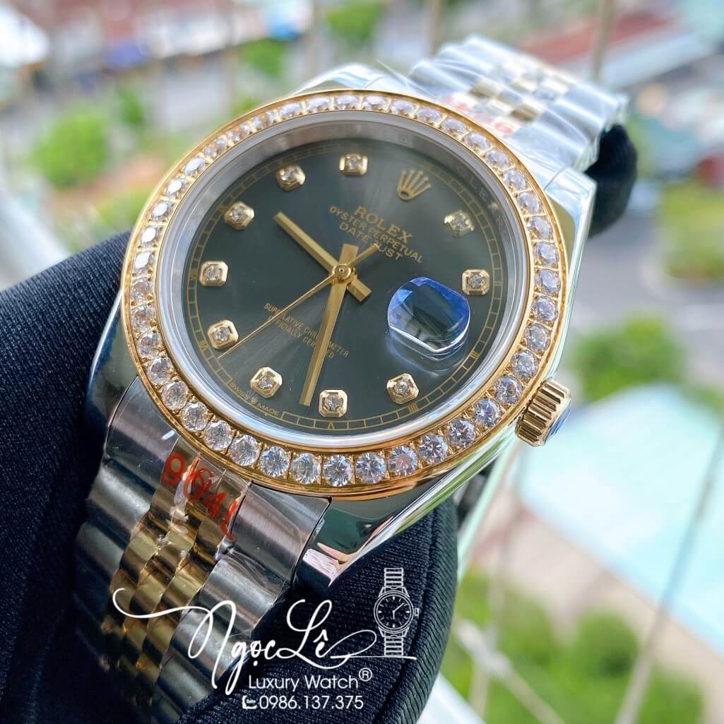 - Đồng hồ Rolex Datejust tự động cho nam mặt viền đính đá cao cấp, sang trọng