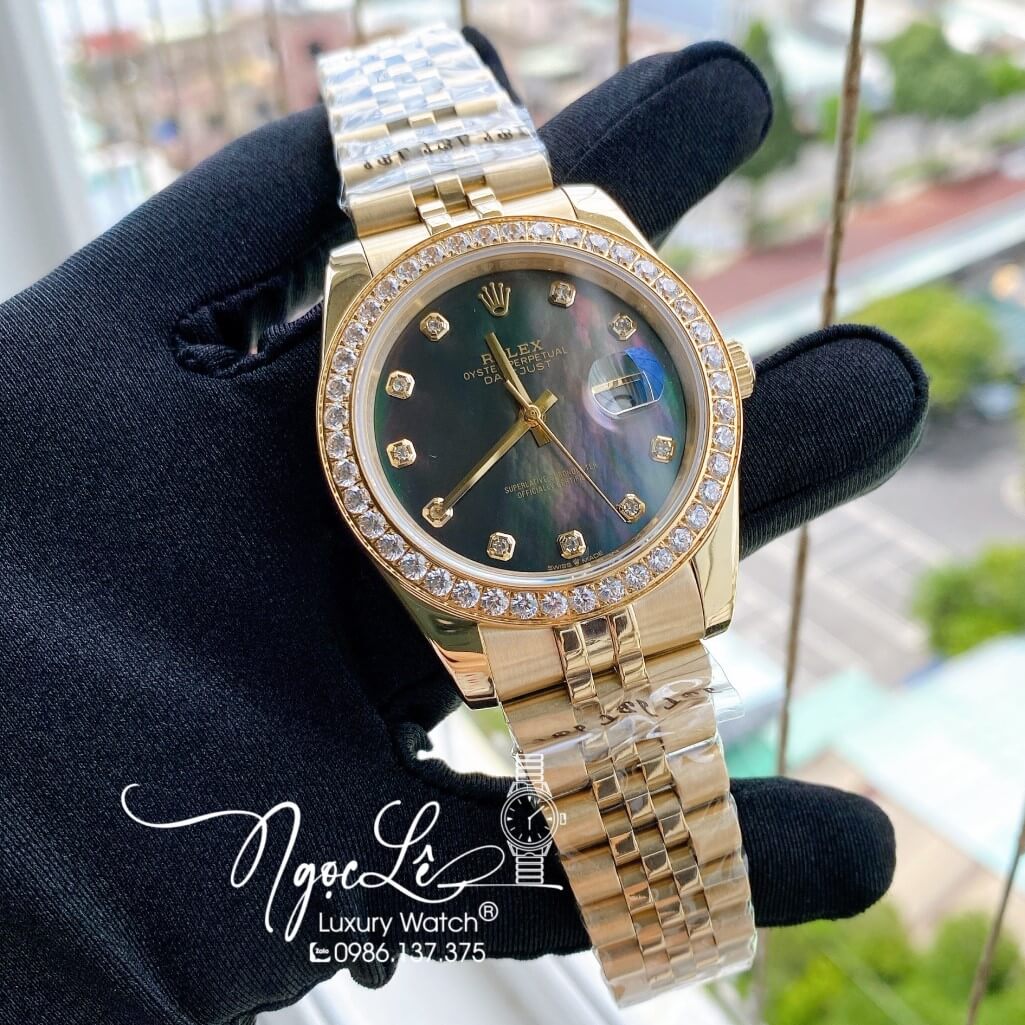 Đồng Hồ Rolex Datejust Nam Automatic Màu Vàng Mặt Xà Cừ Viền Đá 41mm