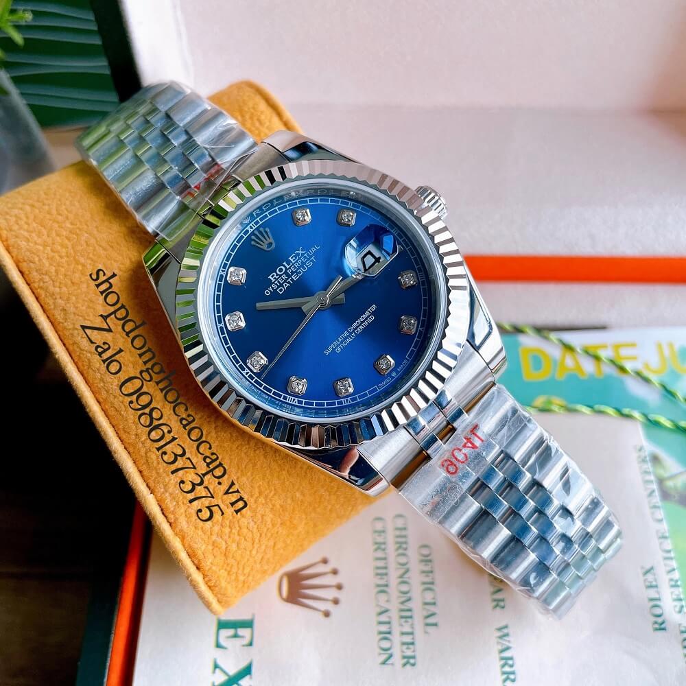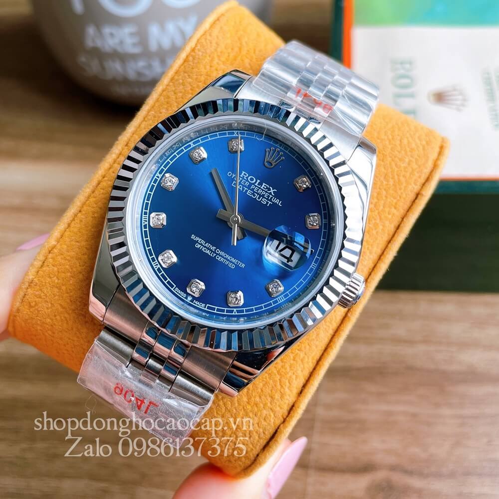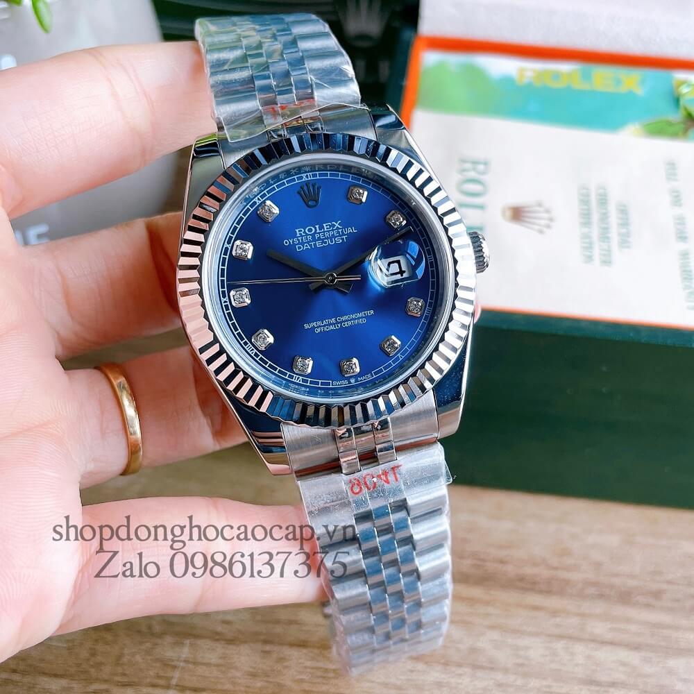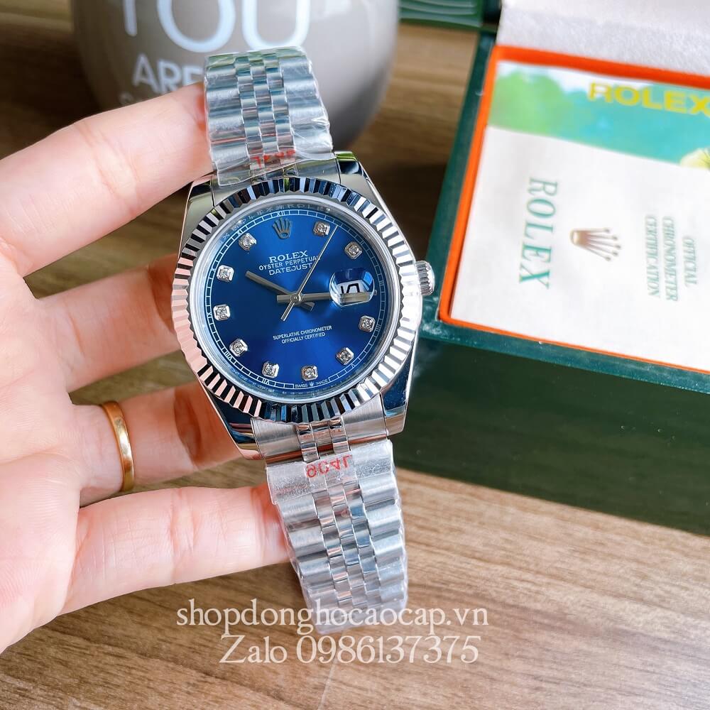 - Đồng Hồ Rolex Datejust Nam Automatic (Tự Động) Viền Khía Mặt Xanh Dương Silver 41mm