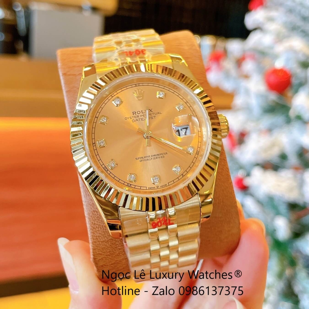 Hình ảnh Đồng Hồ Rolex Datejust Nam Máy Pin Dây Kim Loại Vàng Mặt Vàng Size 41mm