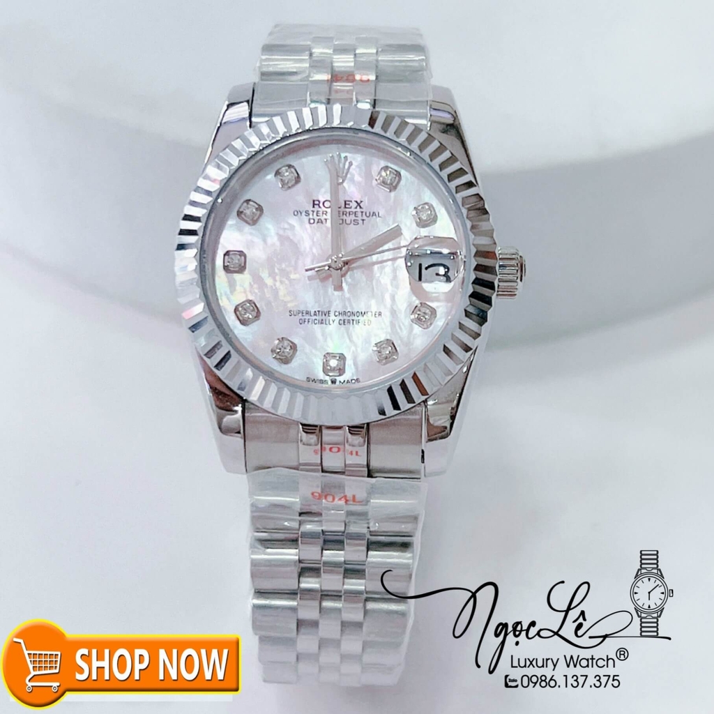 - Đồng Hồ Rolex Datejust Nữ Máy Cơ Tự Động Bạc Mặt Trắng Xà Cừ Size 31mm