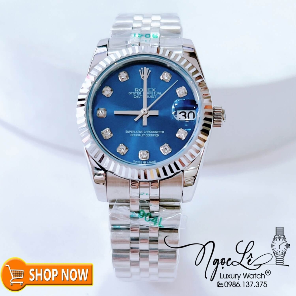 Đồng Hồ Rolex Datejust Nữ Máy Cơ Tự Động Dây Bạc Mặt Xanh Dương Size 31mm