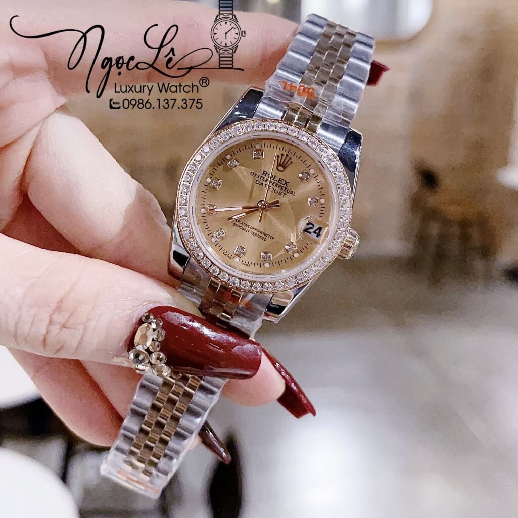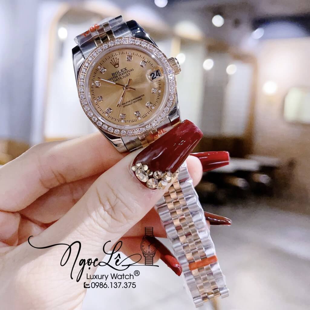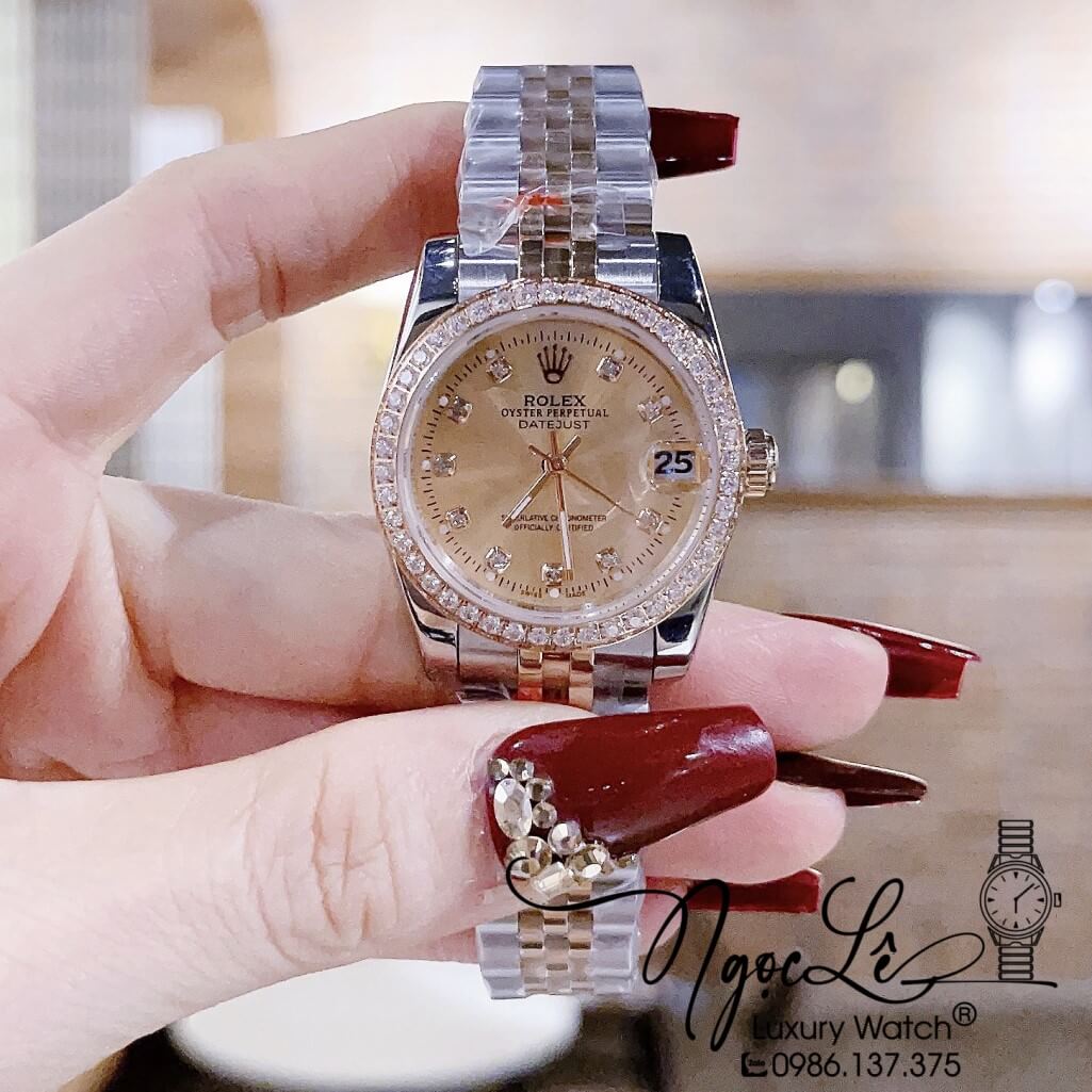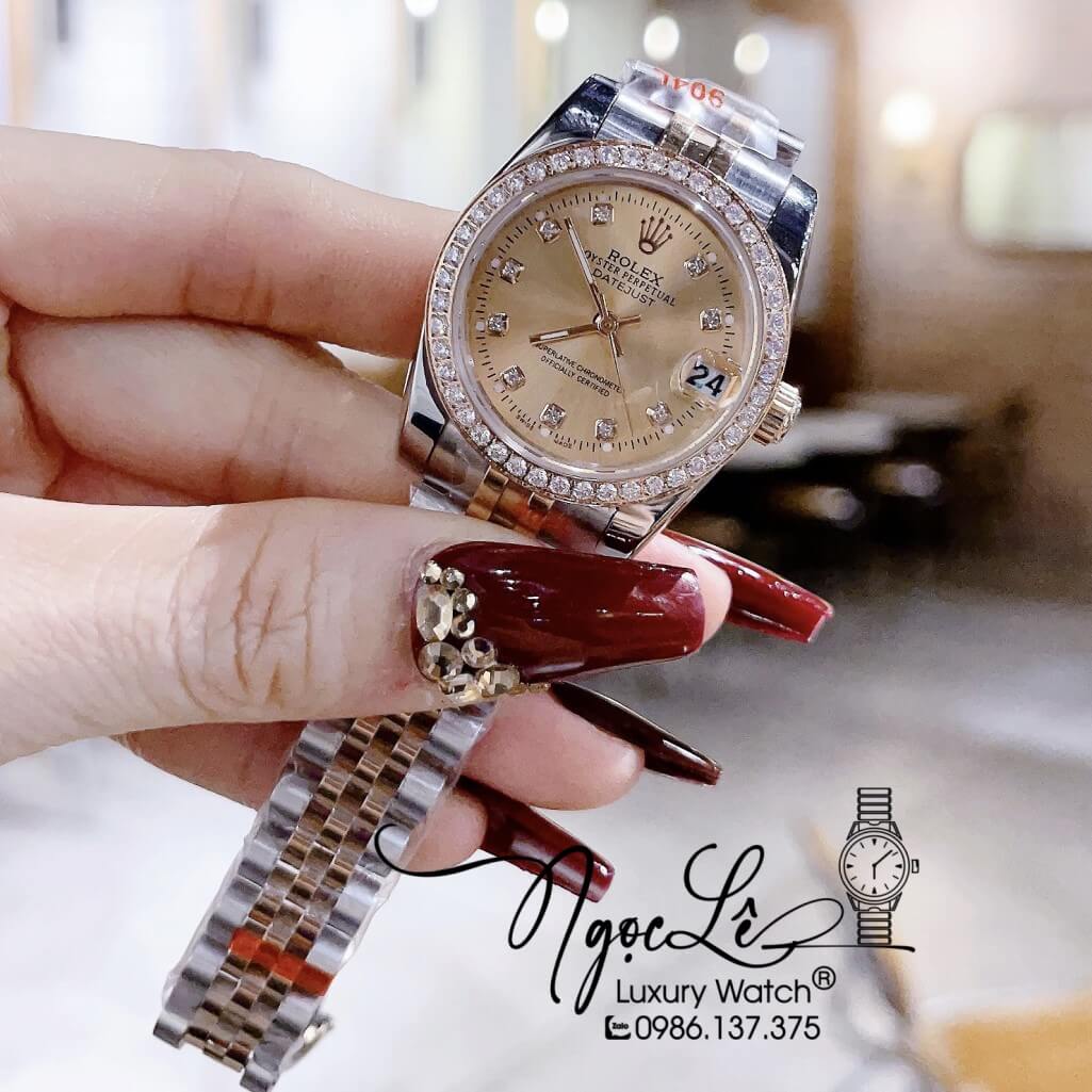 Đồng Hồ Rolex Datejust Nữ Máy Pin Màu Demi Rose Viền Đá 32mm