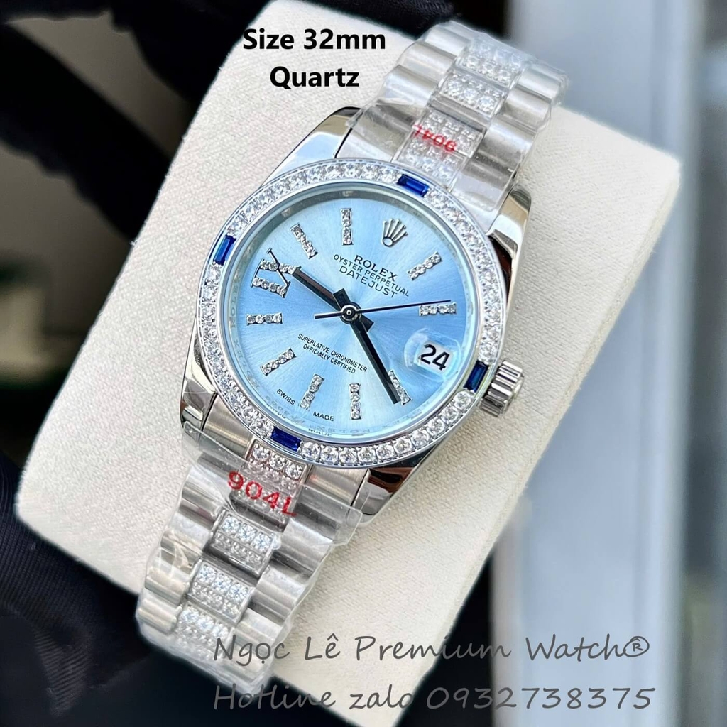 Hình ảnh Đồng Hồ RoLex Datejust Siêu Cấp Mặt Xanh Nước Biển Size 31mm - Rolex nữ máy Quartz Japan đính đá sang trọng