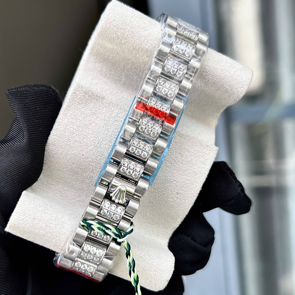 Đồng hồ Rolex nữ đính đá trắng hàng siêu cấp, dây và mặt đồng hồ đính đá tạo điểm nhấn nổi bật