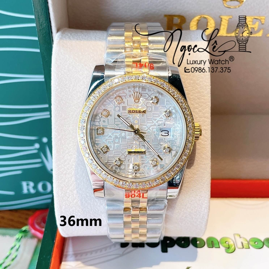 Đồng Hồ Rolex Datejust Quartz Dây Demi Vàng Mặt Vi Tính Size 36mm Đính Đá