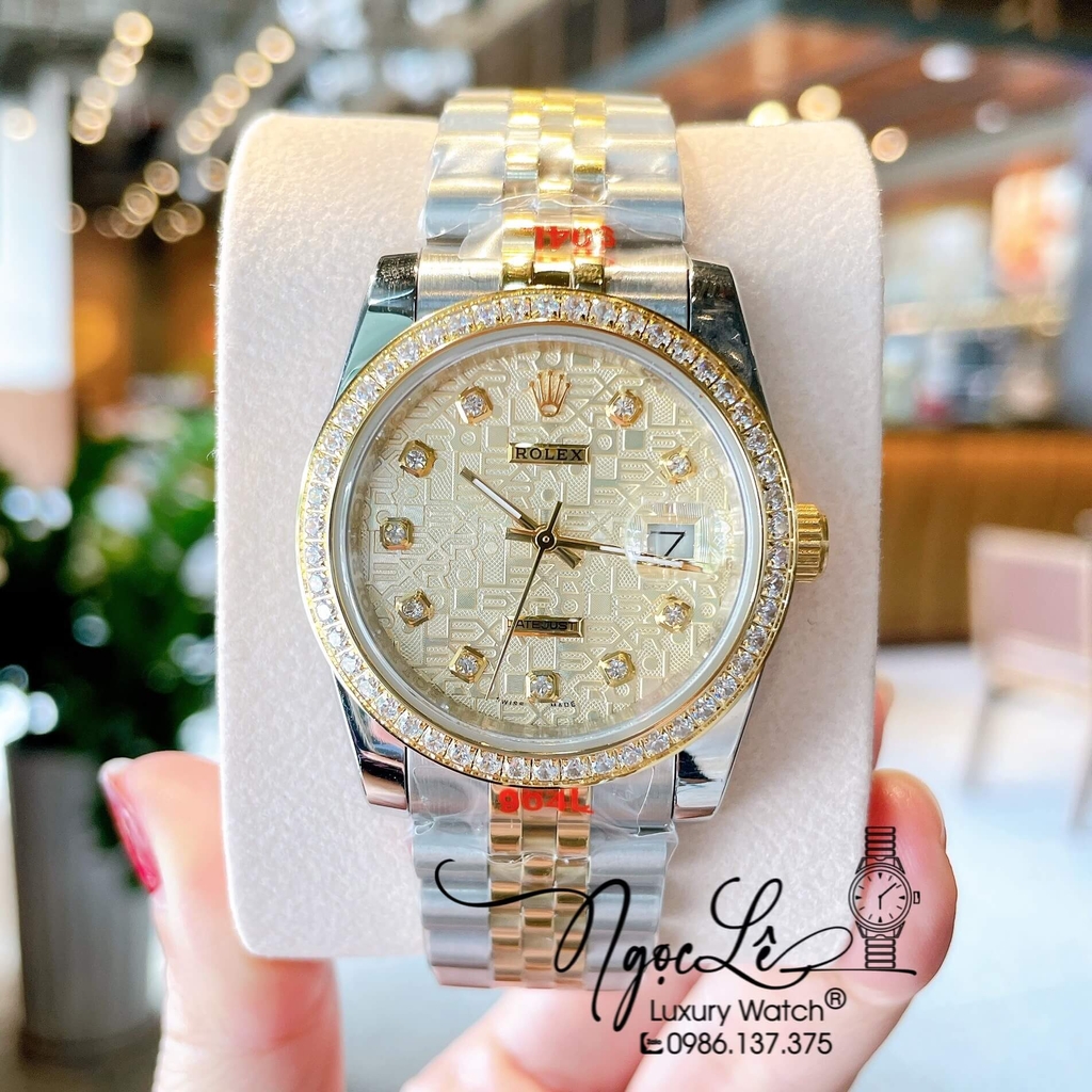 Đồng Hồ Rolex Datejust Quartz Dây Demi Vàng Mặt Vi Tính Vàng Size 36mm Đính Đá