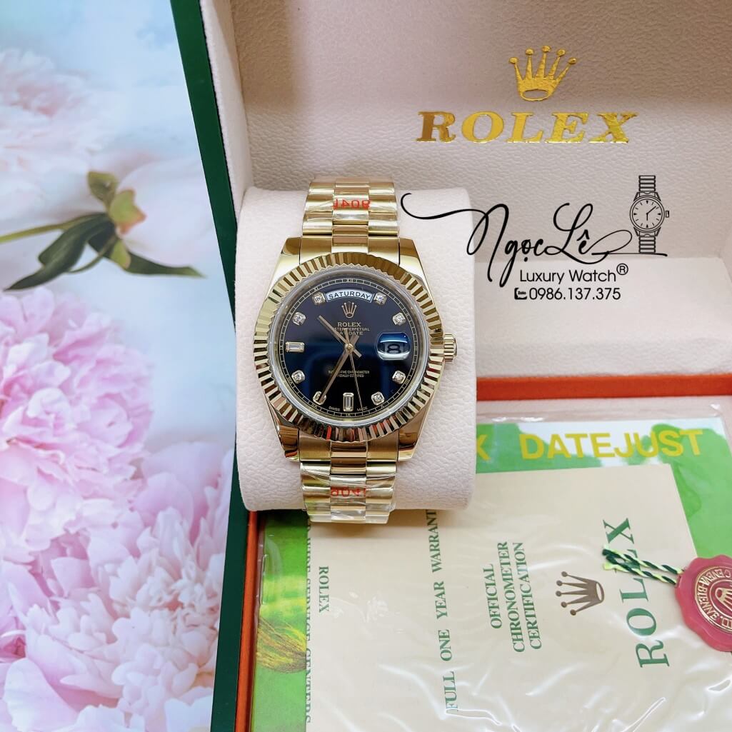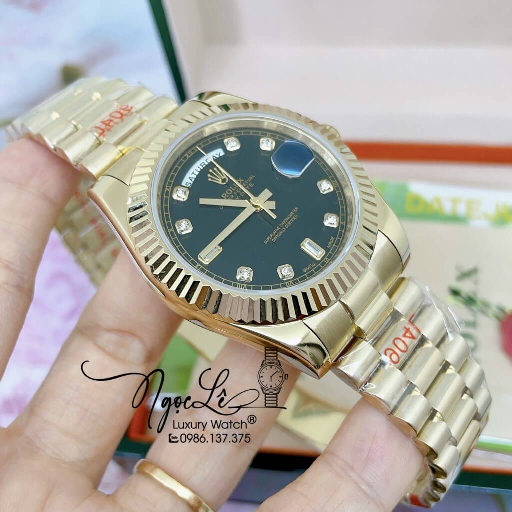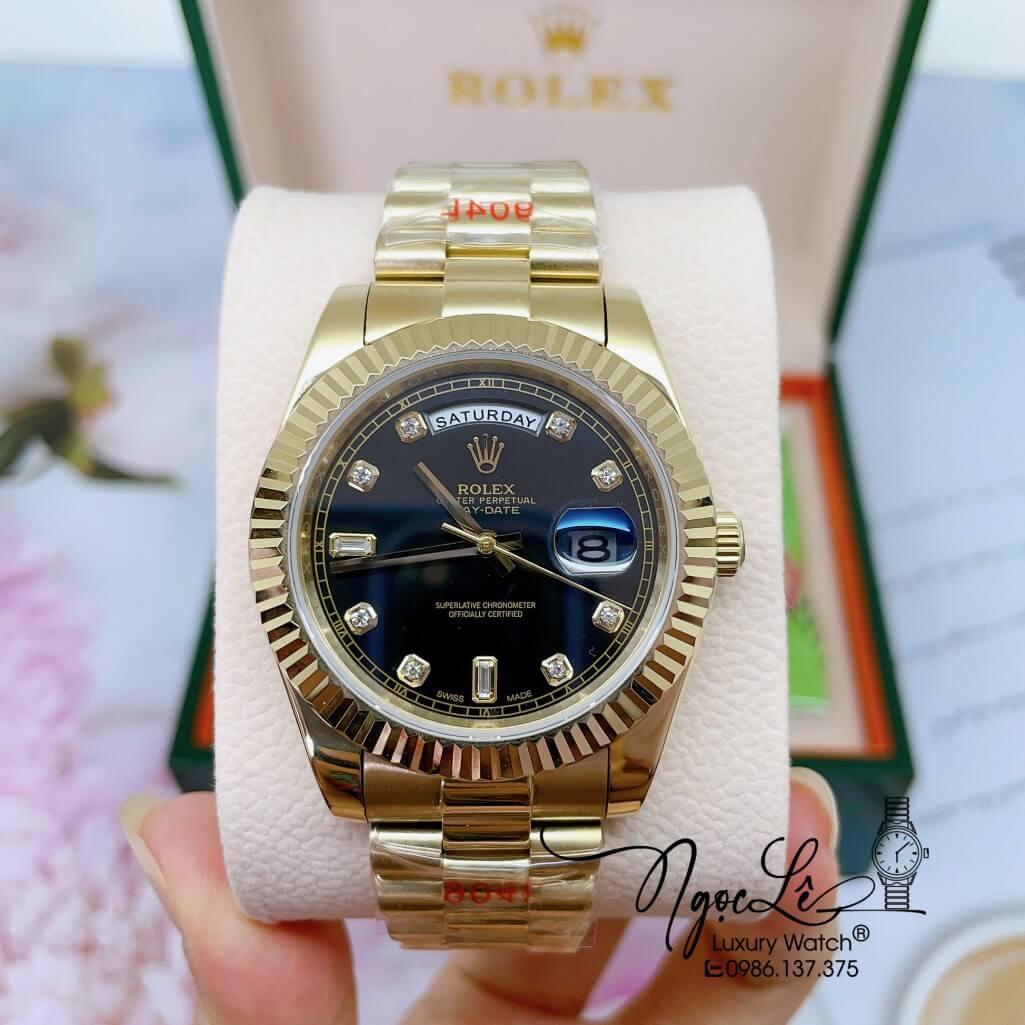 Đồng Hồ Rolex Day-Date Automatic Dây Kim Loại Vàng Mặt Đen 41mm