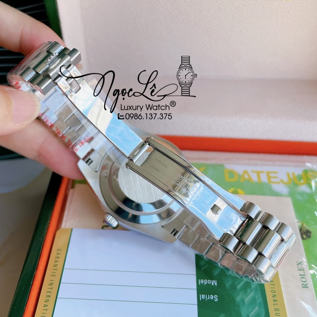 - Size mặt 41mm 2 lịch viền khía nổi bật, dòng sản phẩm Rolex mặt số la mã