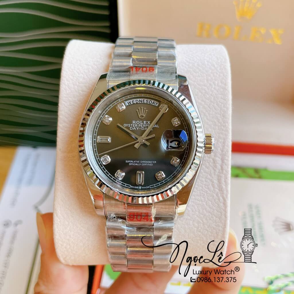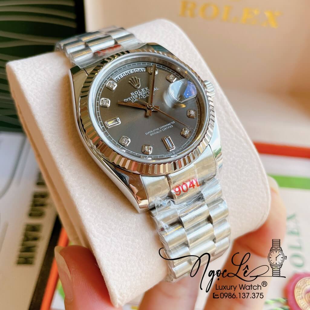 Đồng Hồ Rolex Day-Date Automatic Unisex Dây Kim Loại Bạc Mặt Xám 36mm