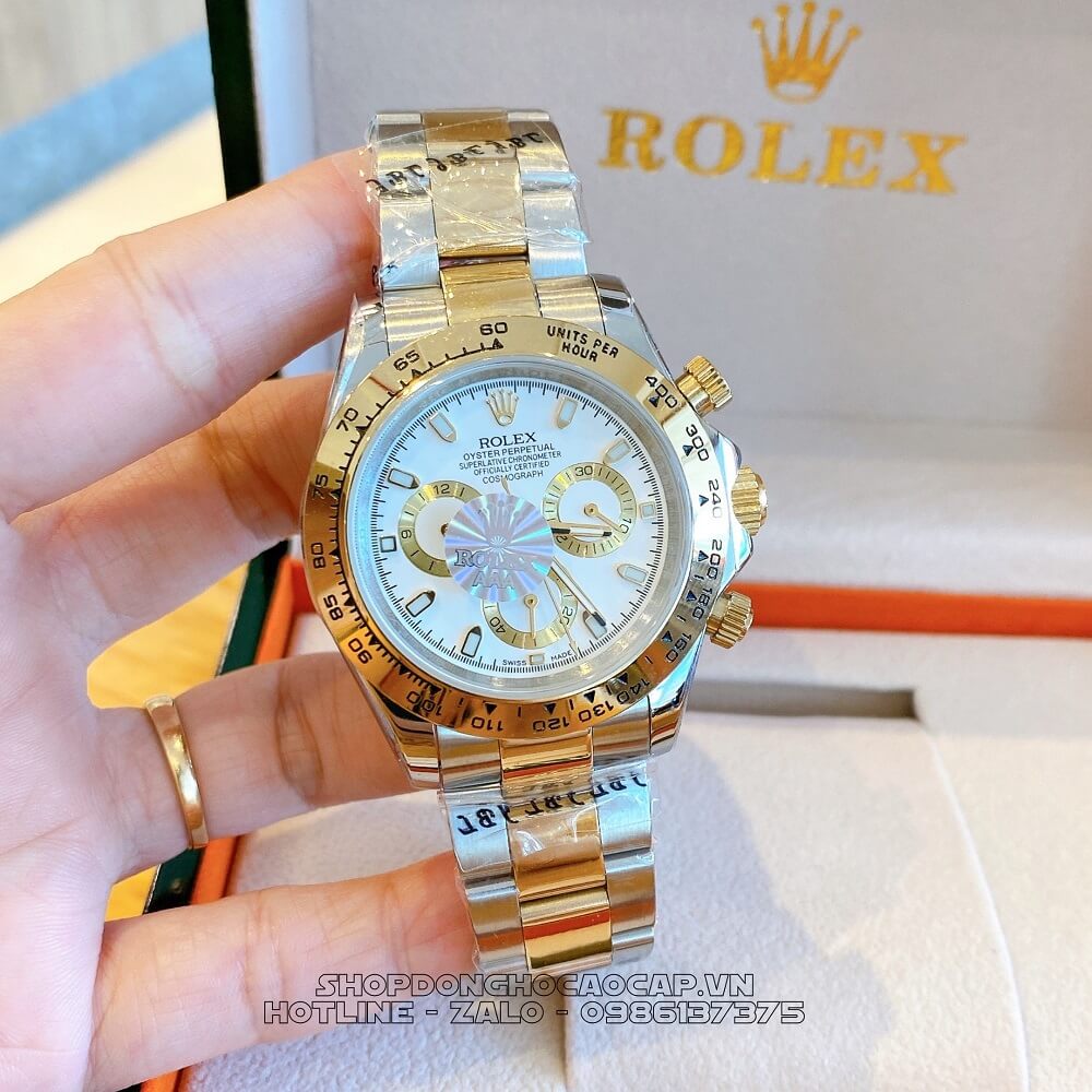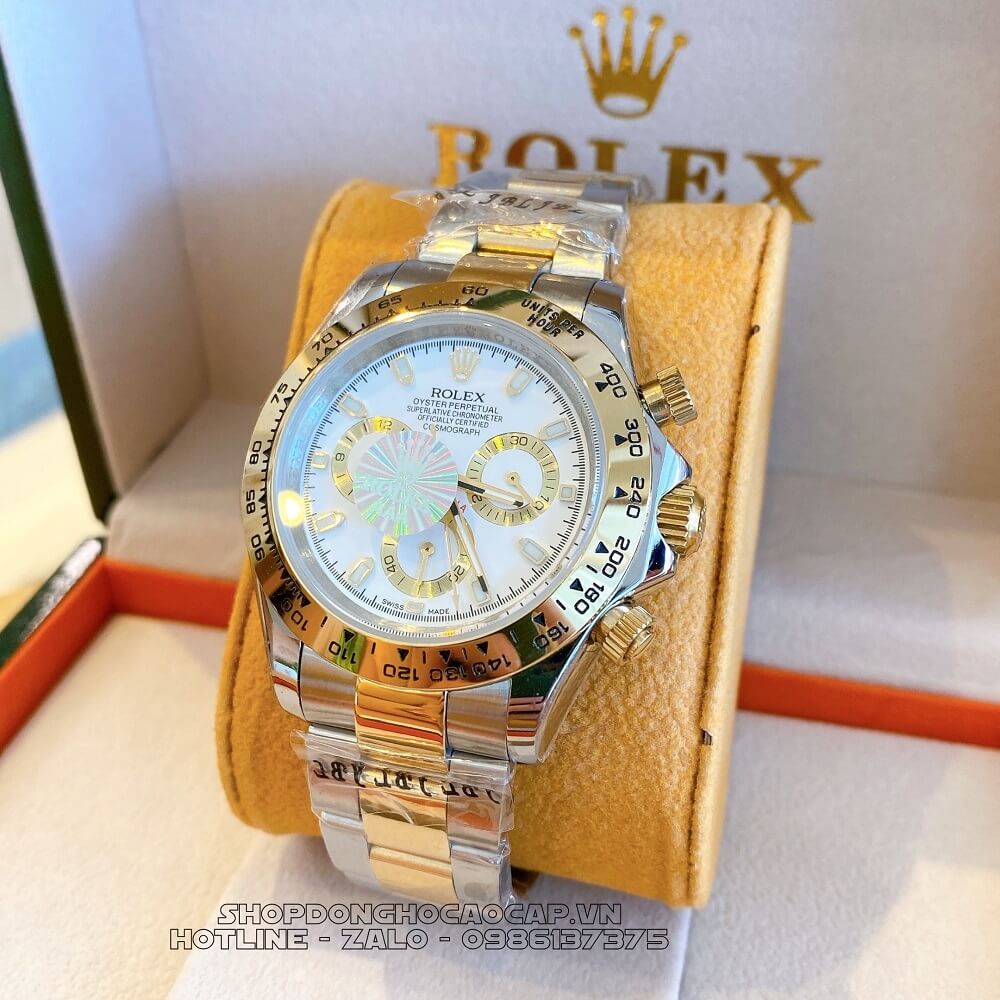 - Đồng Hồ Rolex Daytona Tự Động Nam Dây Kim Loại Demi Trắng 40mm