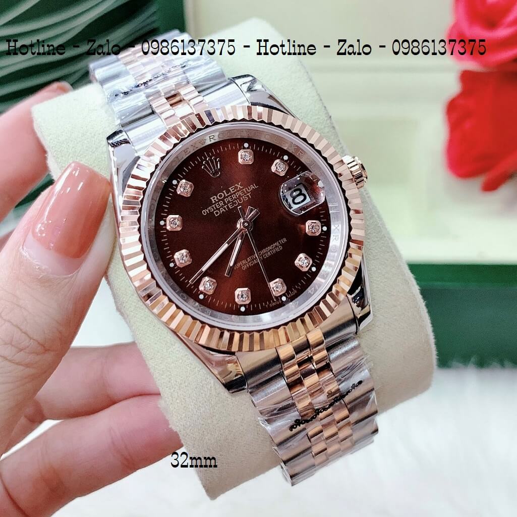 - Đồng Hồ Rolex Demi Rose Mặt Nâu 36mm - 32mm