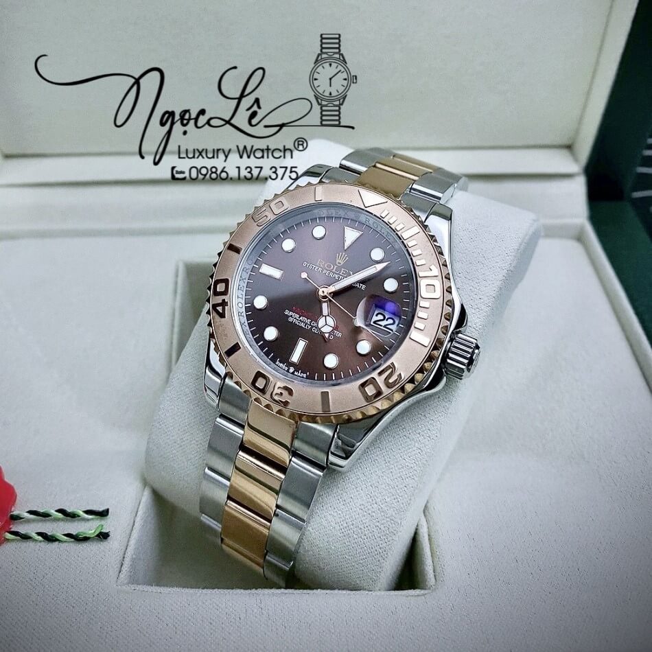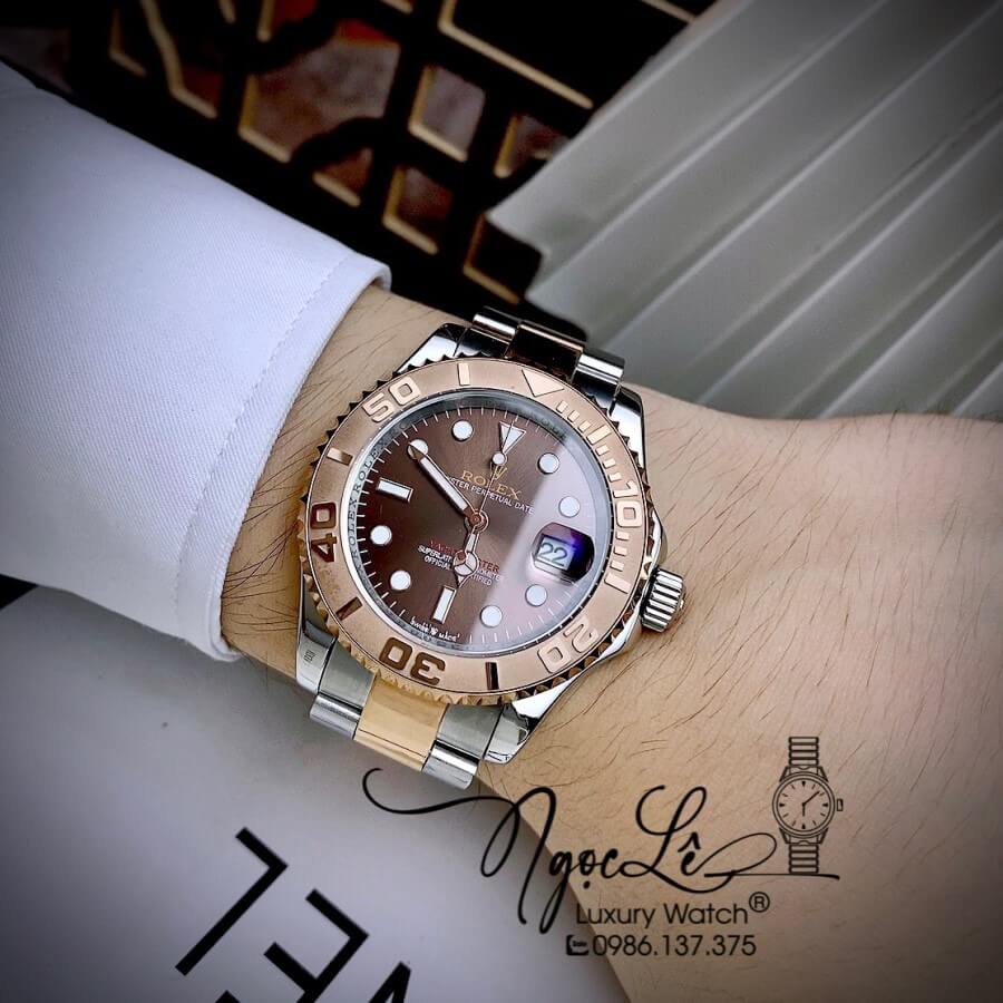 Đồng Hồ Rolex Yacht Master Automatic Nam Dây Kim Loại Demi Rose Mặt Nâu 40mm