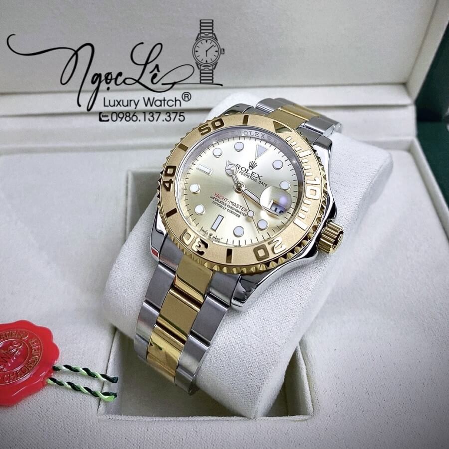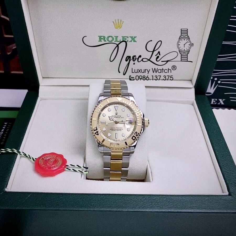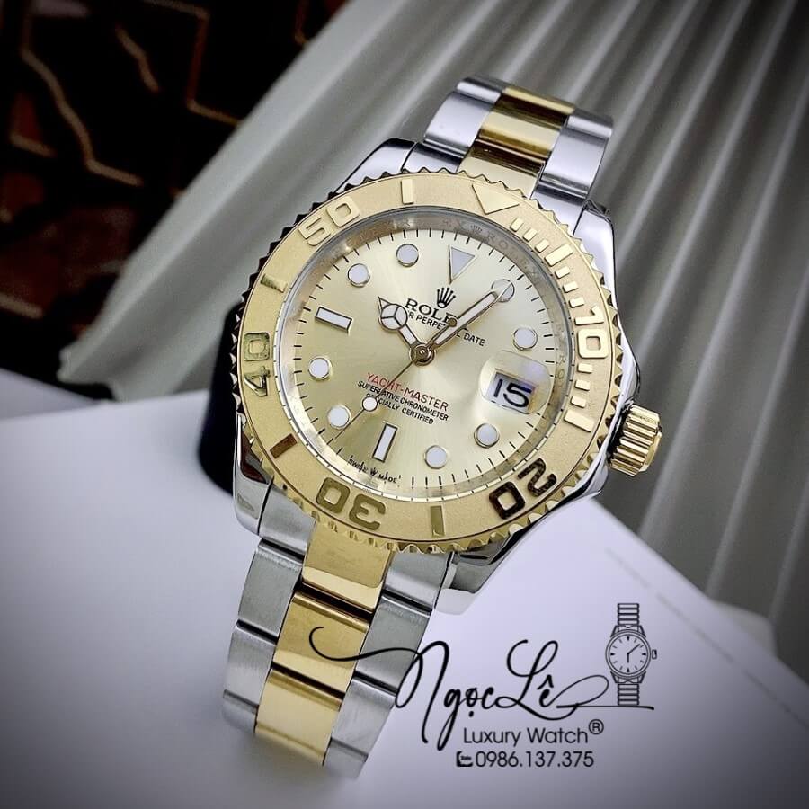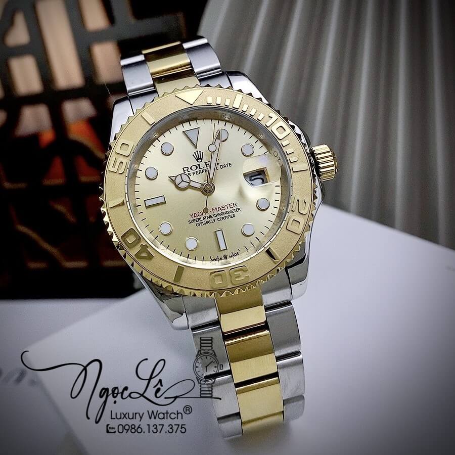 Đồng Hồ Rolex Yacht Master Automatic Nam Dây Kim Loại Demi Vàng Mặt Vàng 40mm