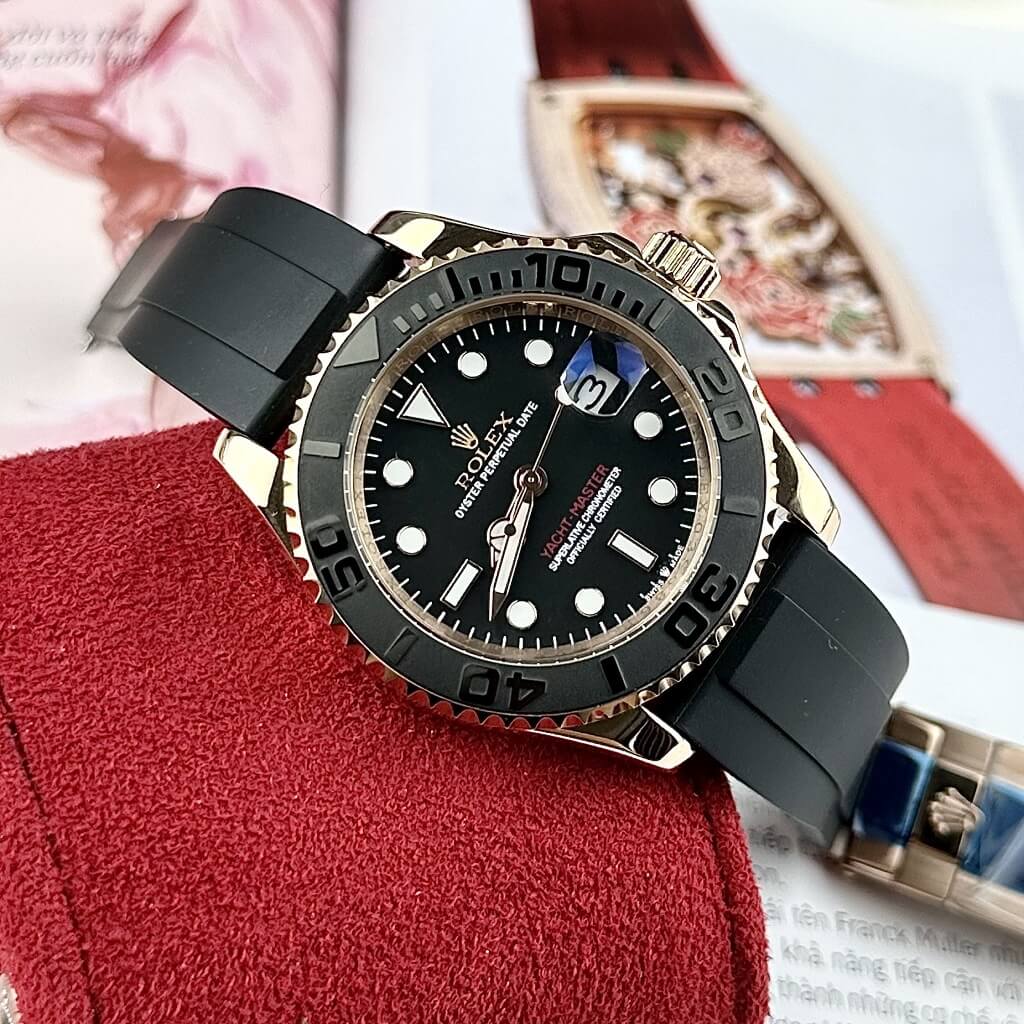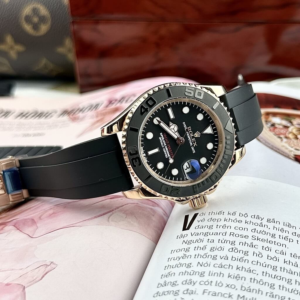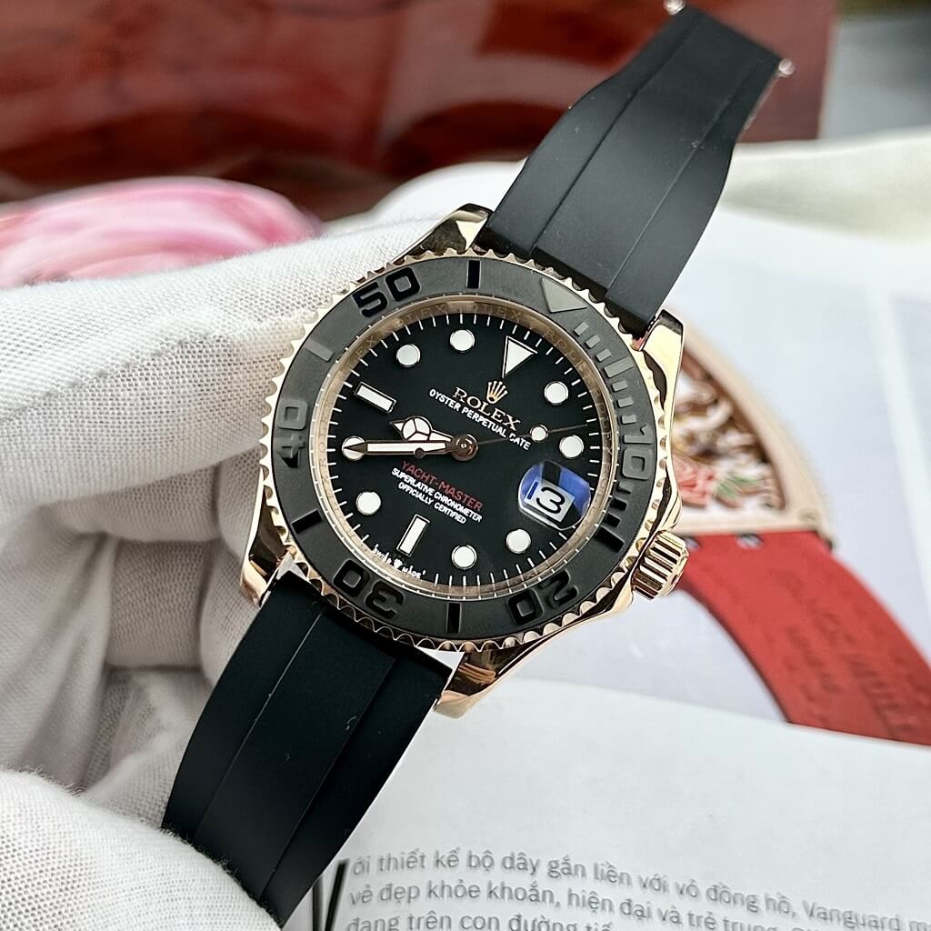 Đồng Hồ Rolex Yacht Master Nam Tự Động Dây Cao Su Đen Rose Gold 40mm