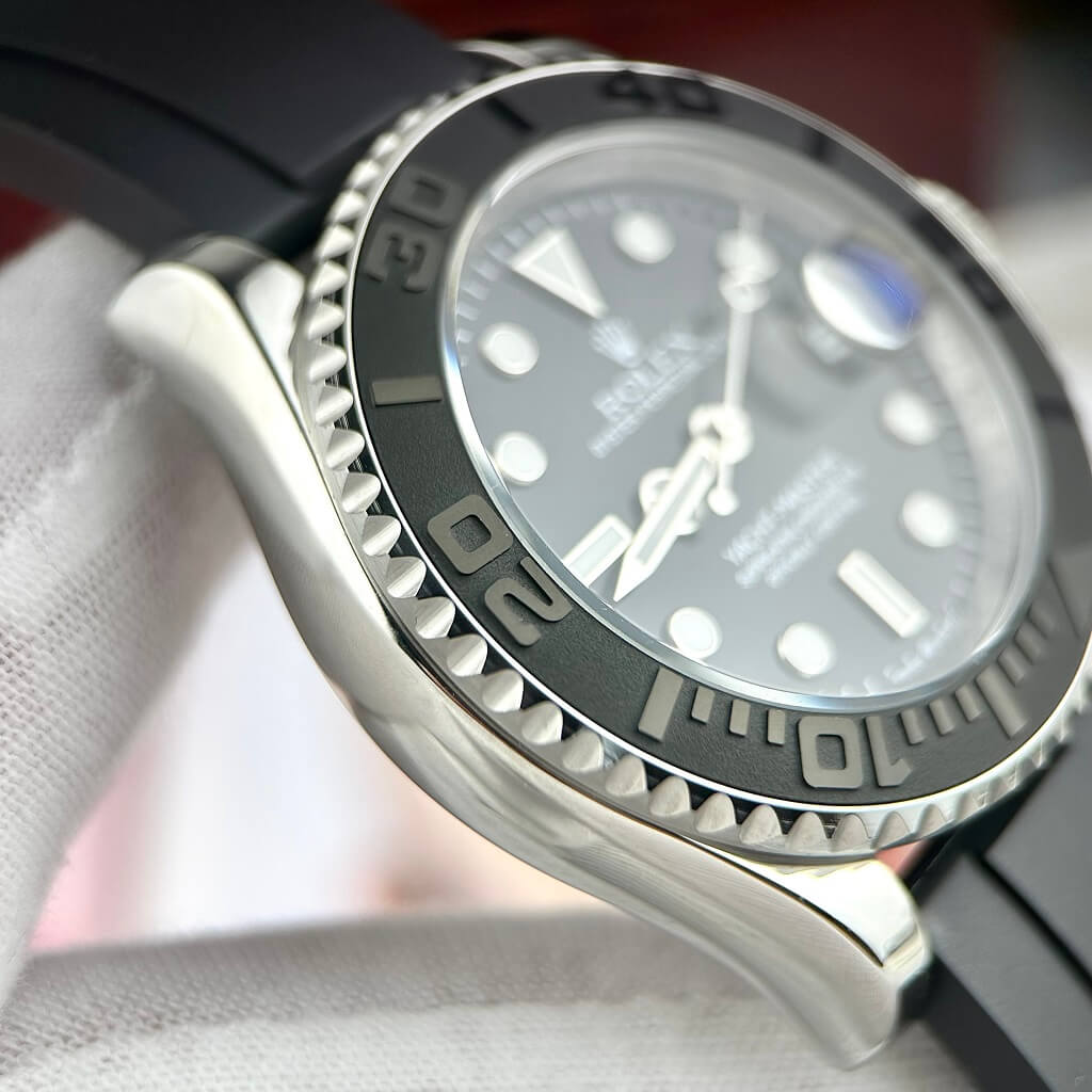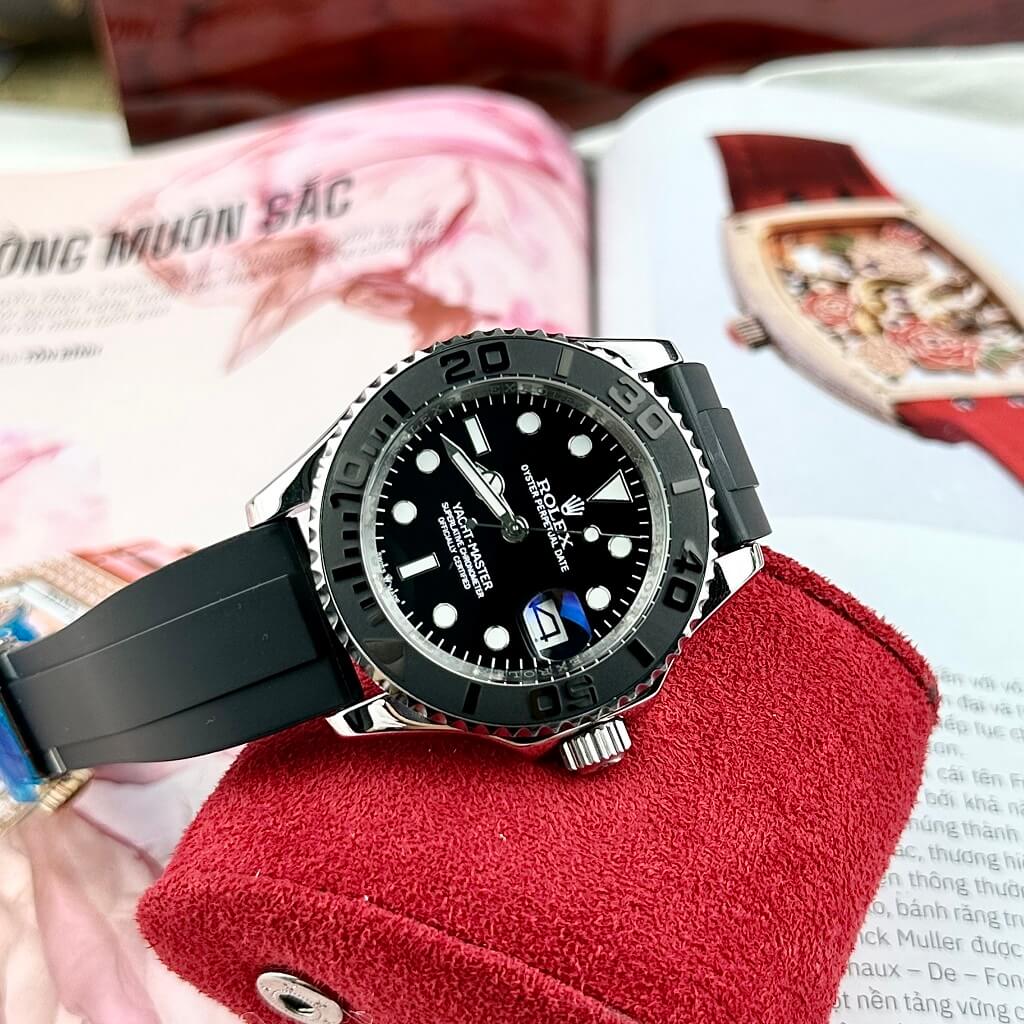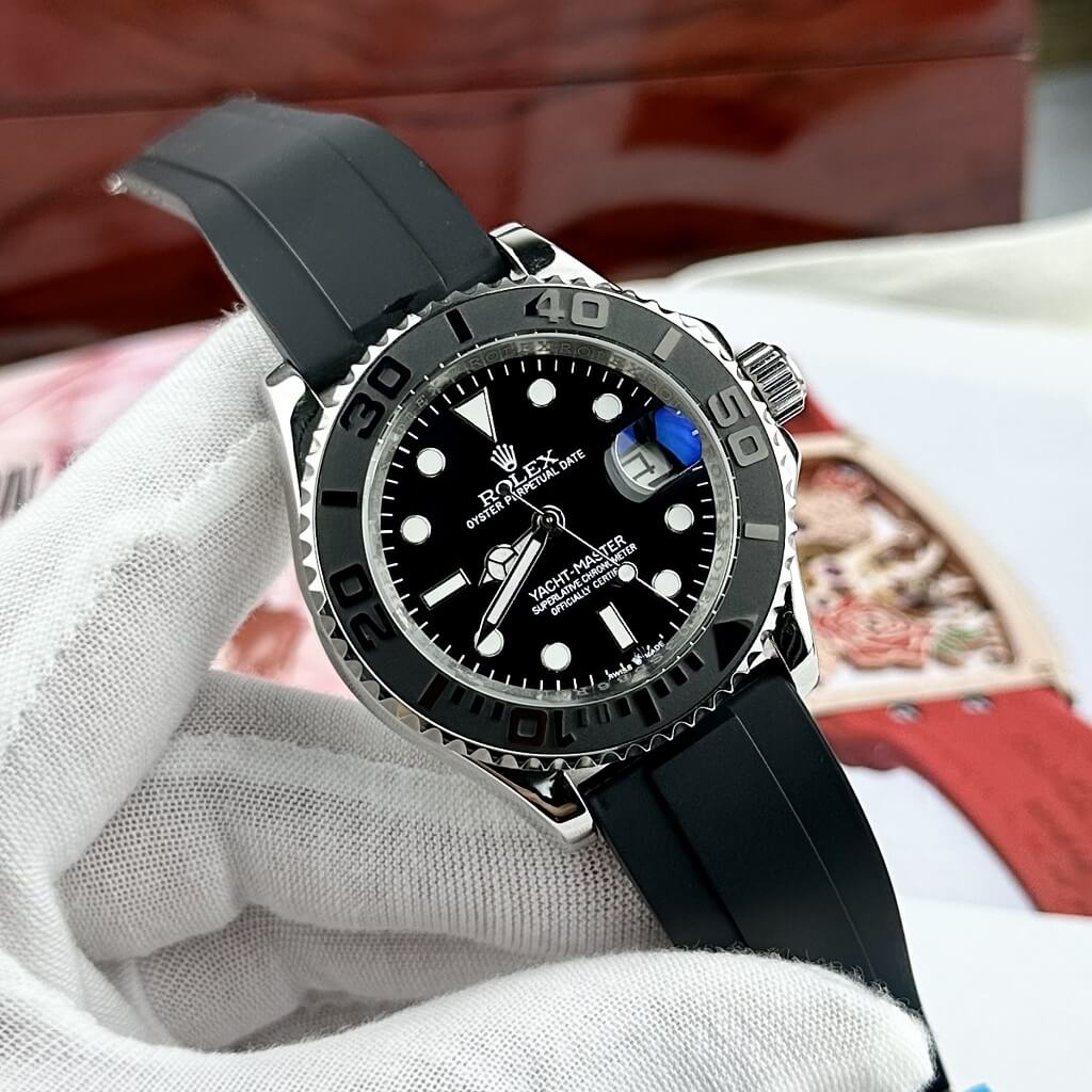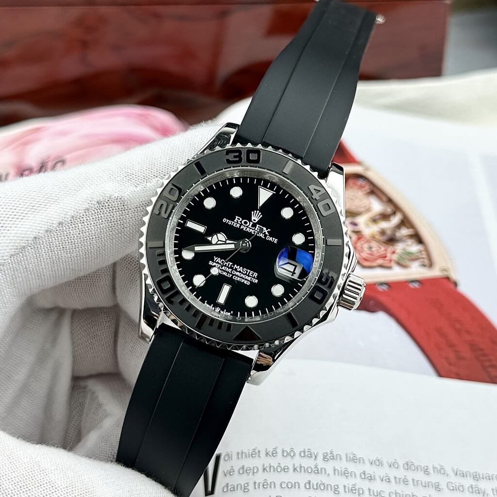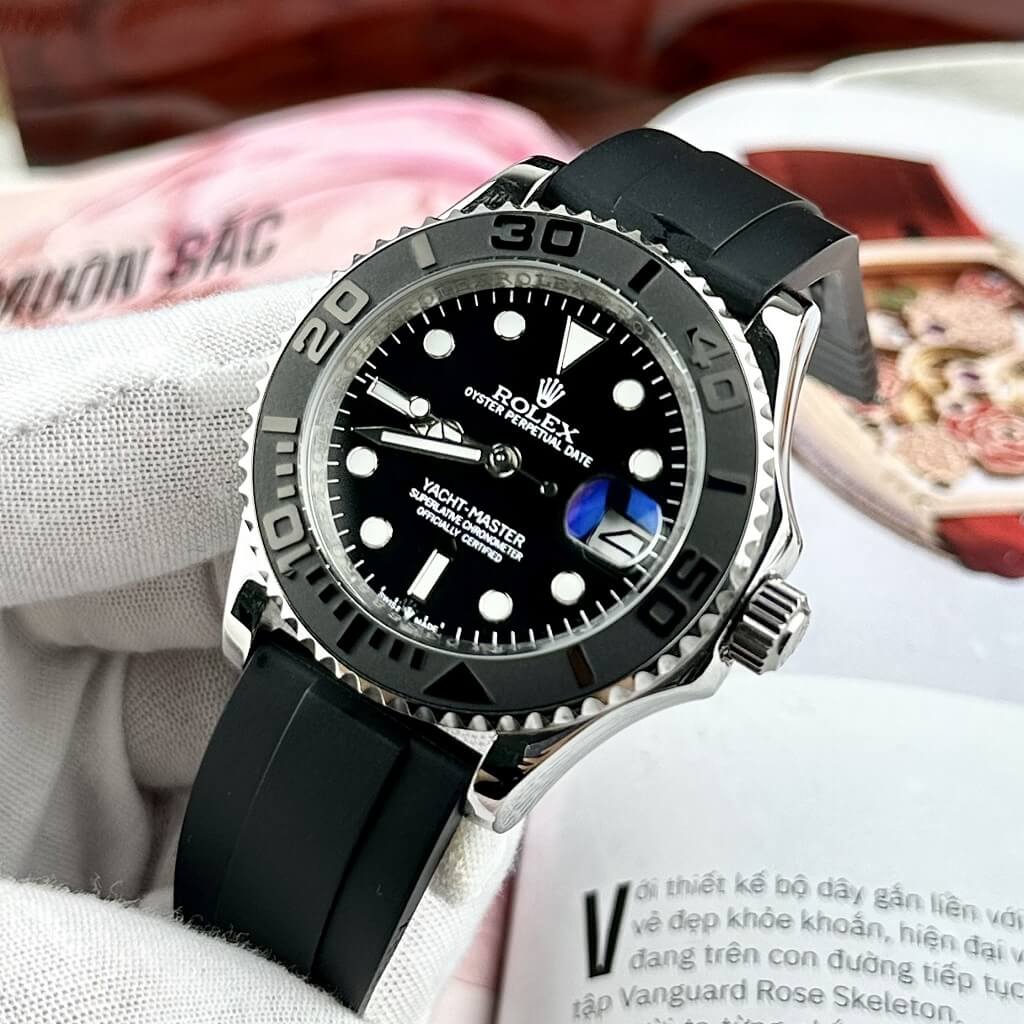 Đồng Hồ Rolex Yacht Master Nam Tự Động Dây Cao Su Đen Silver 40mm