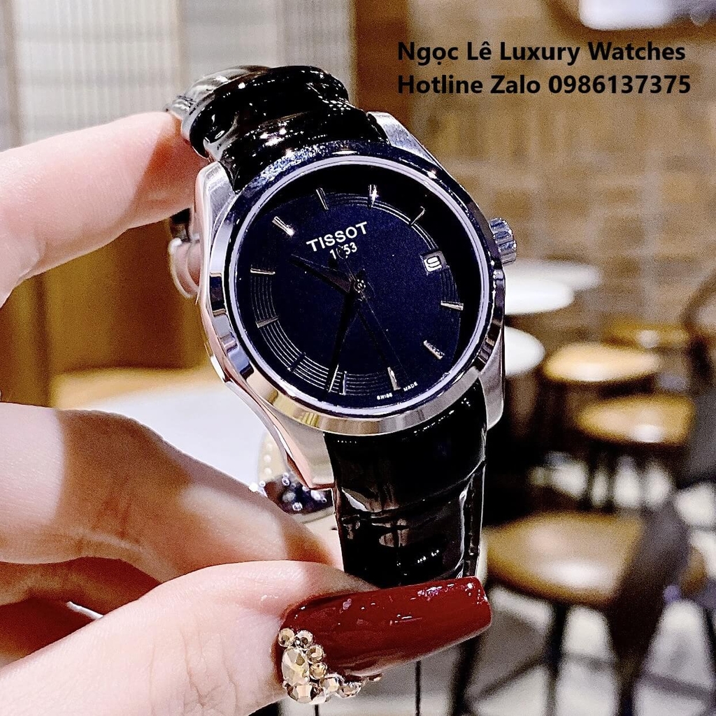 Đồng Hồ Tissot Nữ Dây Da Đen Mặt Đen Size 32mm - Tissot Couturier Quartz