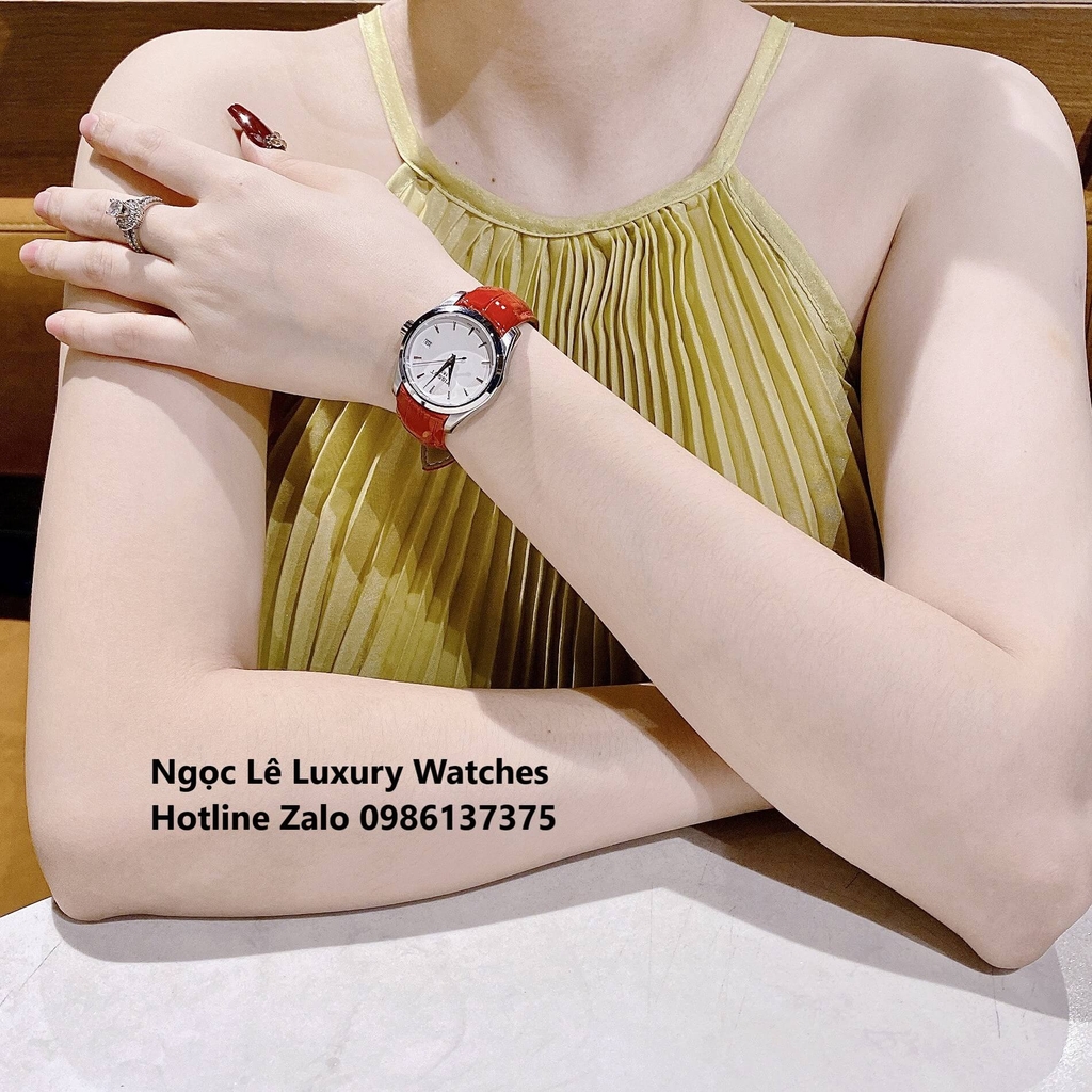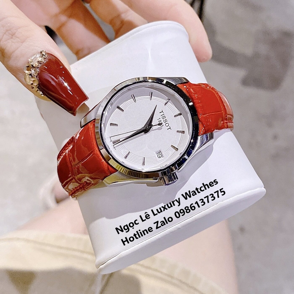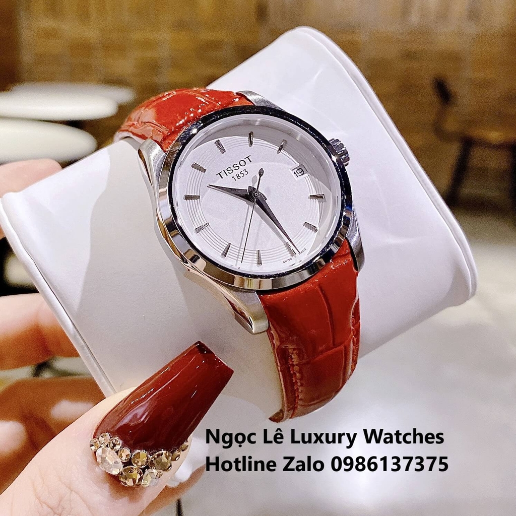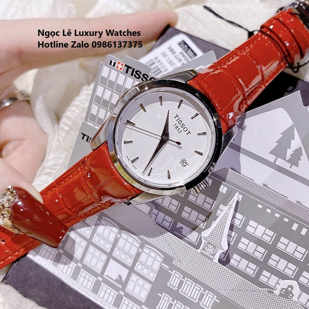 Đồng Hồ Tissot Nữ Dây Da Đỏ Mặt Trắng Size 32mm - Tissot Couturier Quartz